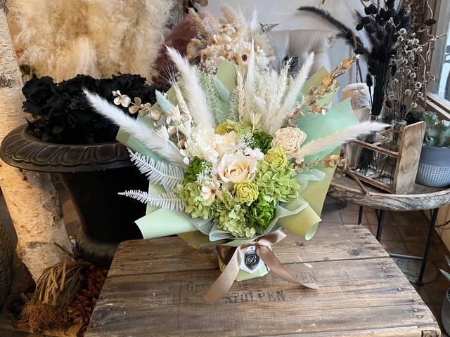 プリザーブドフラワー 花束 ギフト|スタンディングブーケ(自立型・花瓶不要)フレッシュグリーン(M)