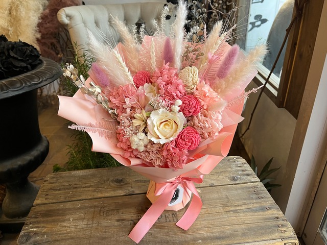 プリザーブドフラワー 花束 ギフト | スタンディングブーケ(自立型・花瓶不要) フラミンゴピンク