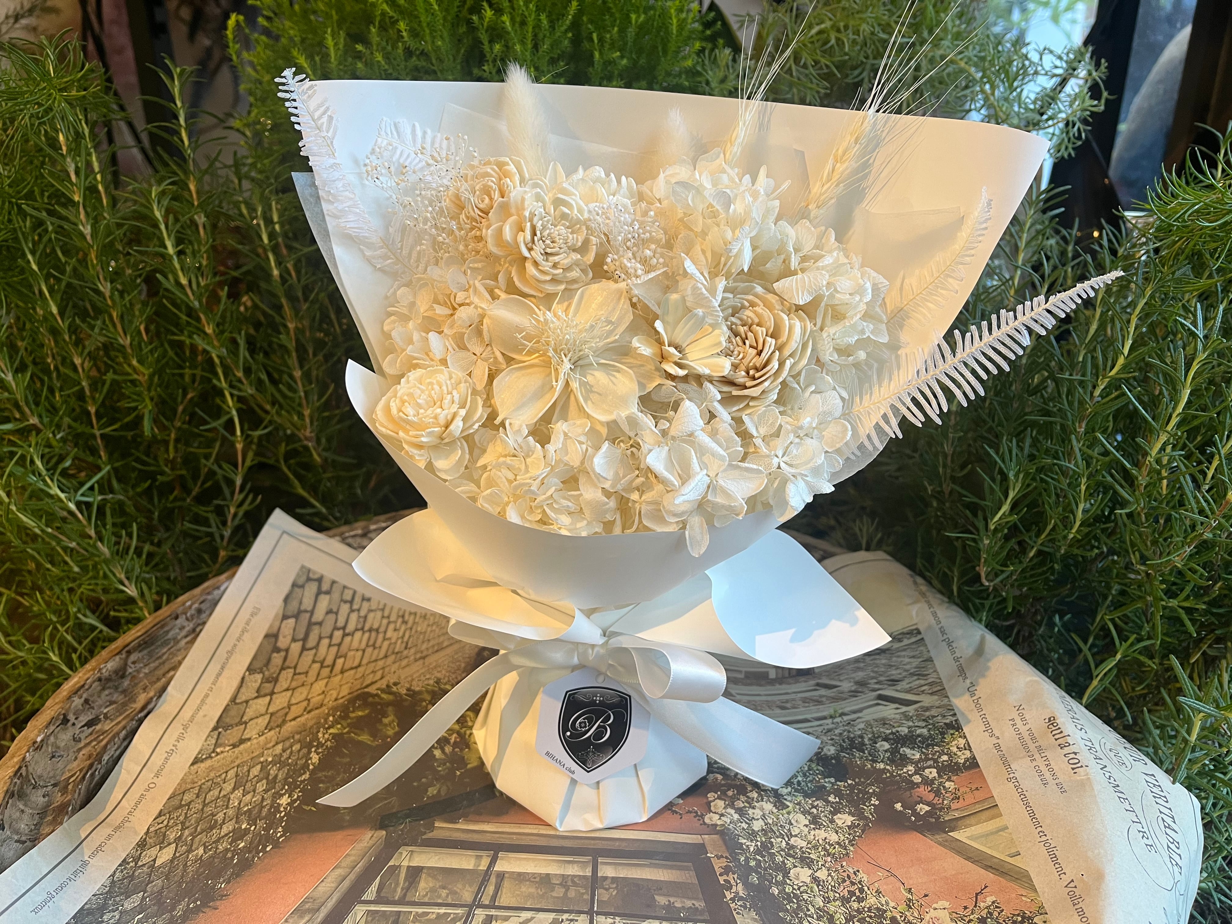 同梱物:プリザーブドフラワーの取扱説明書、主な花材説明書付き
