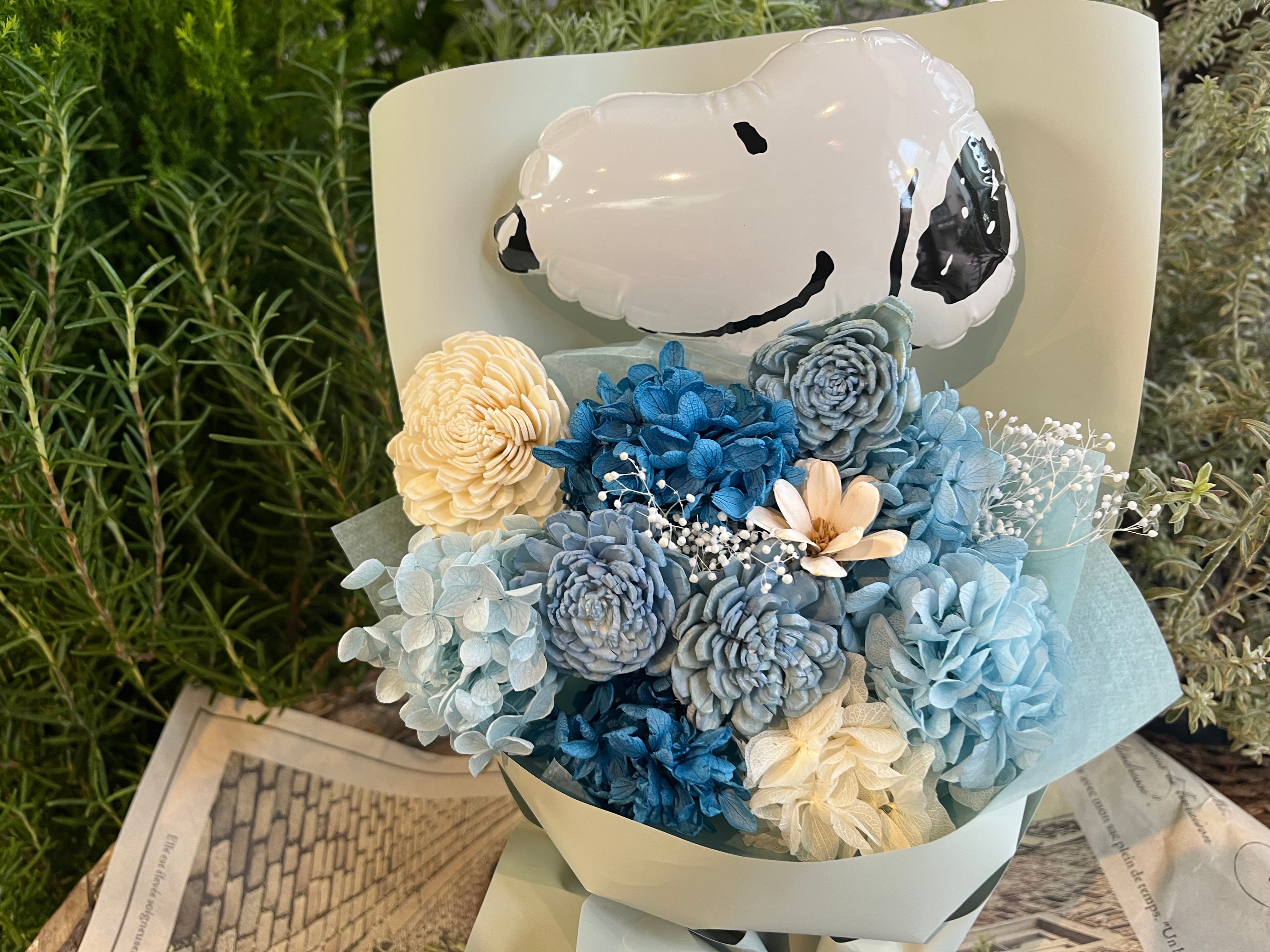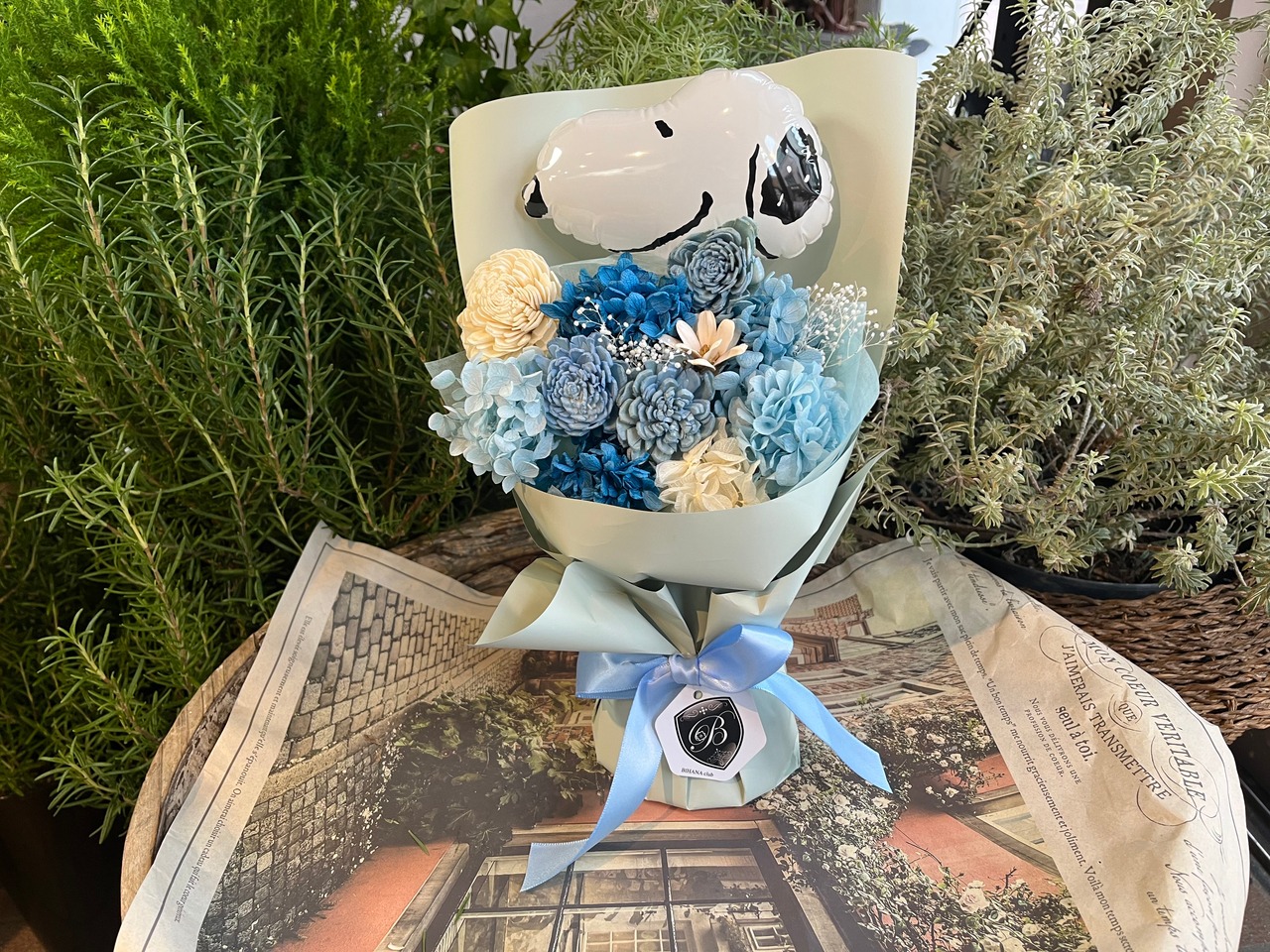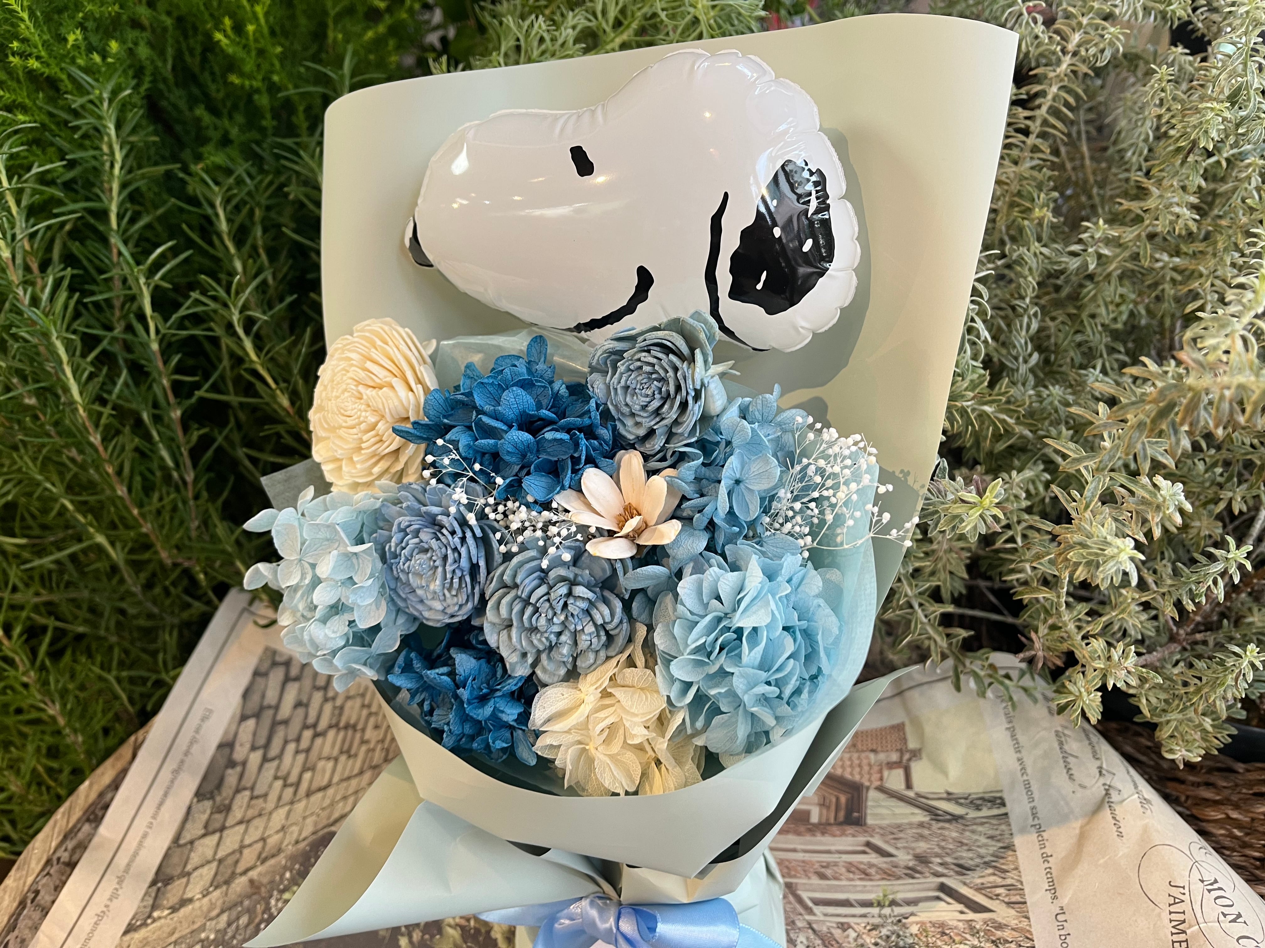 スヌーピーバルーン付スタンディングブーケ(自立型花束)スカイブルー×1