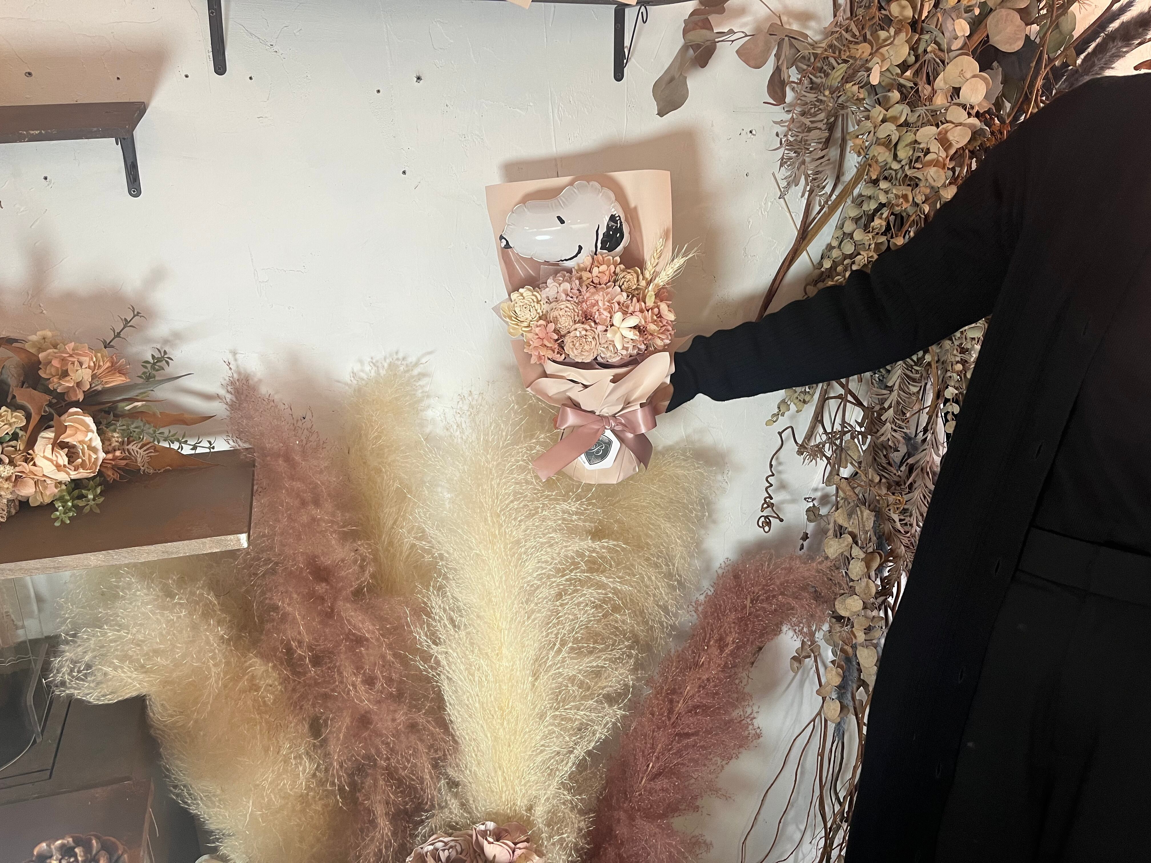 スヌーピーバルーン付スタンディングブーケ(自立型花束)スモーキーピンク×1