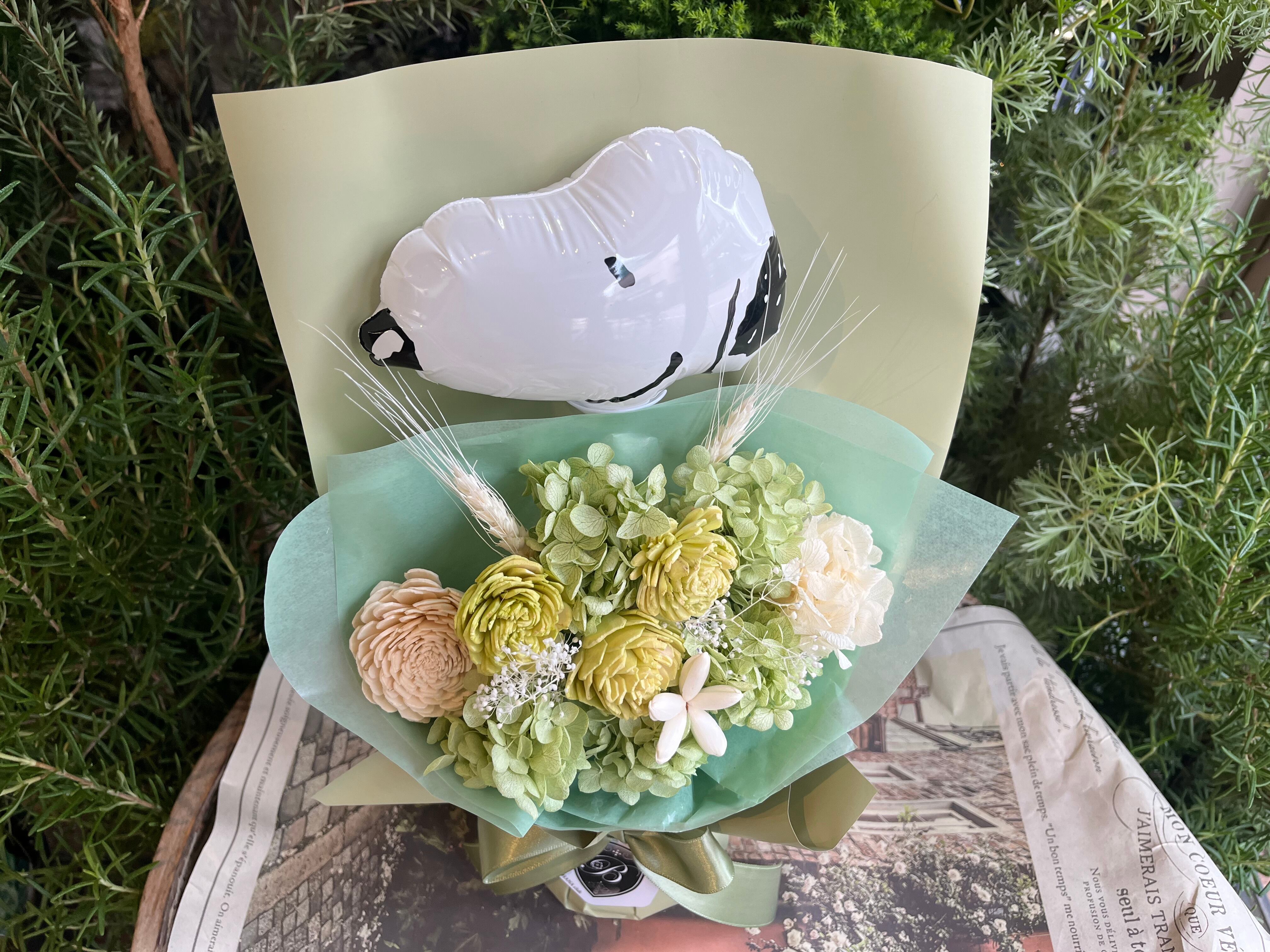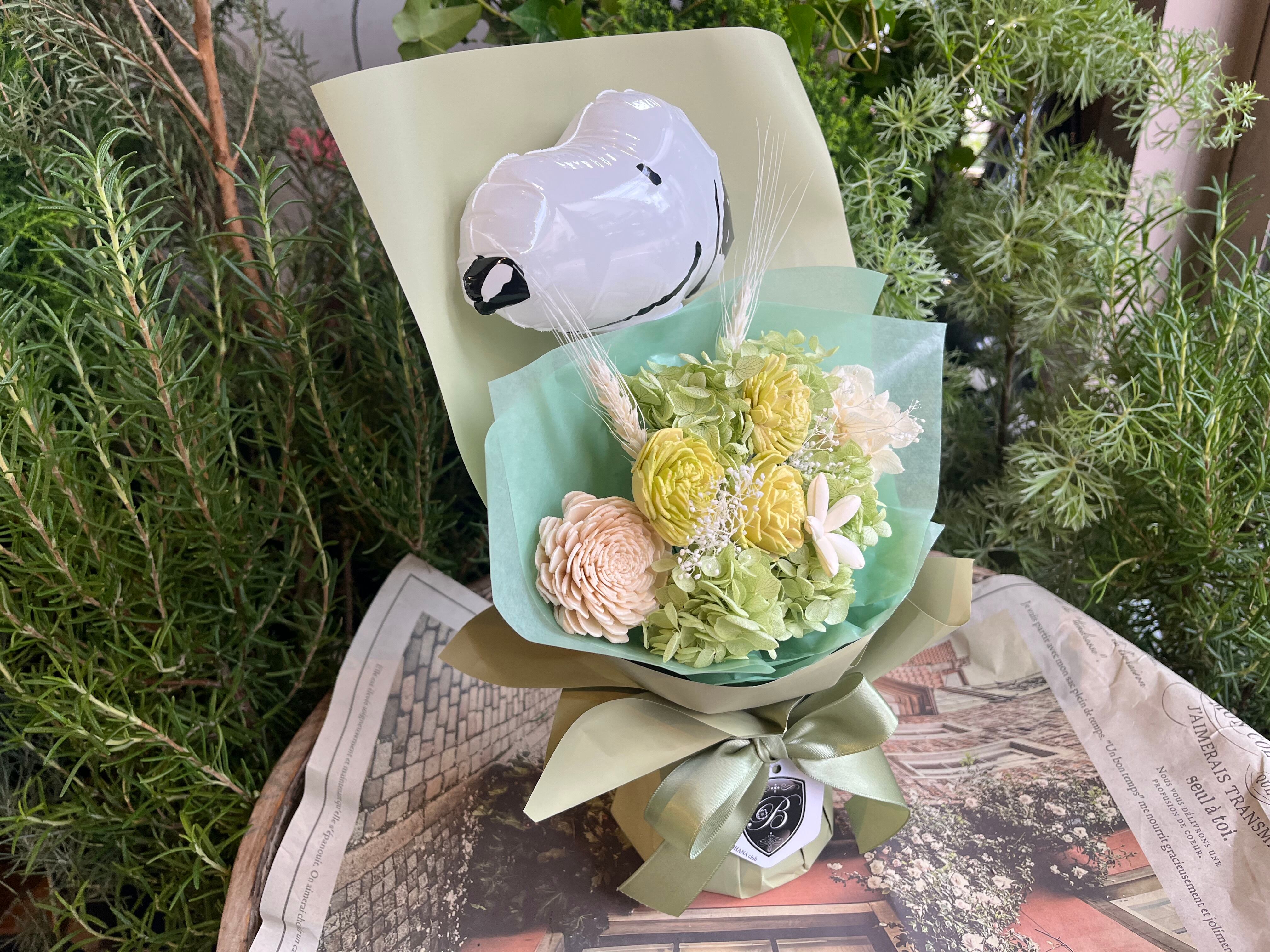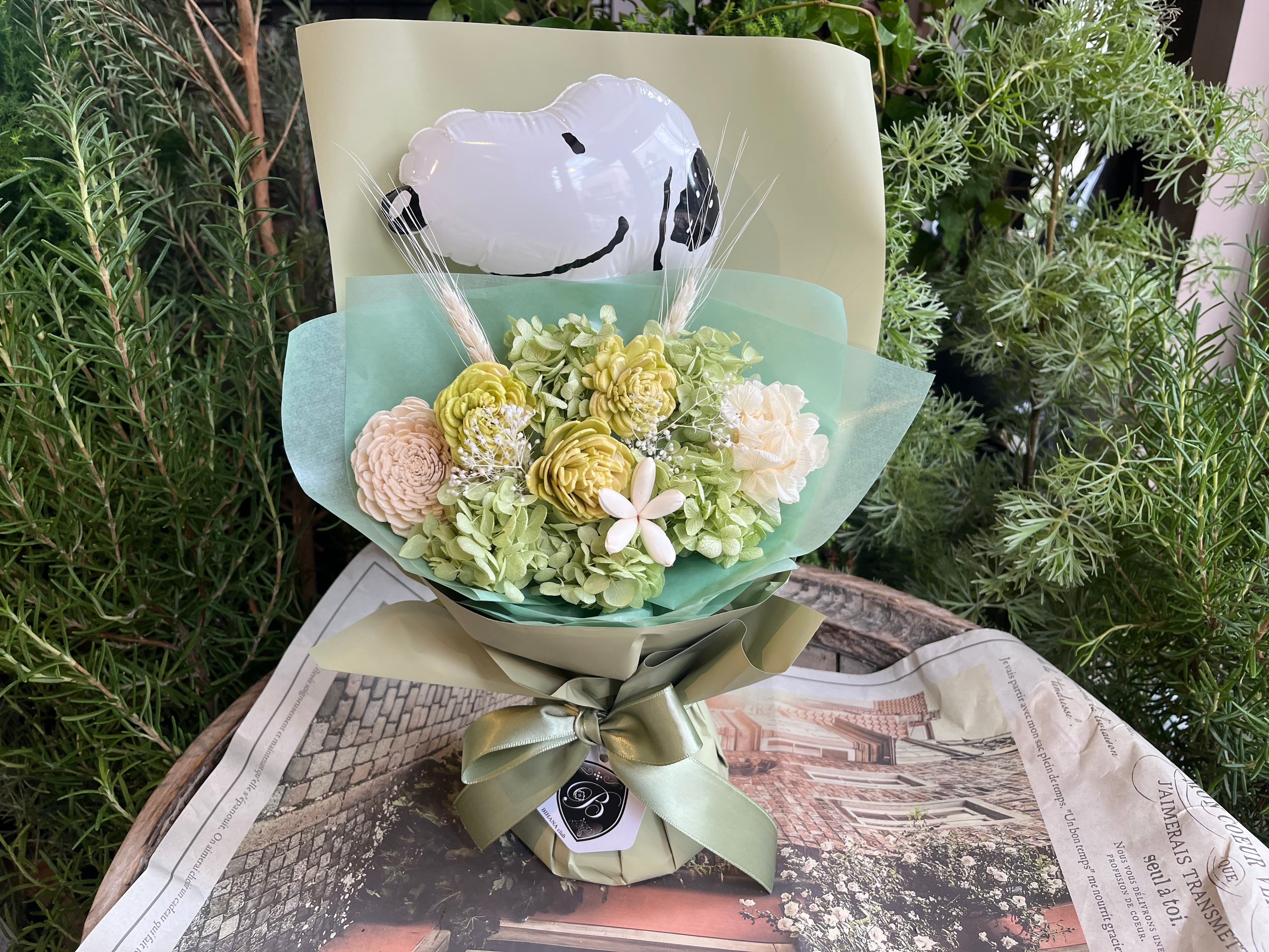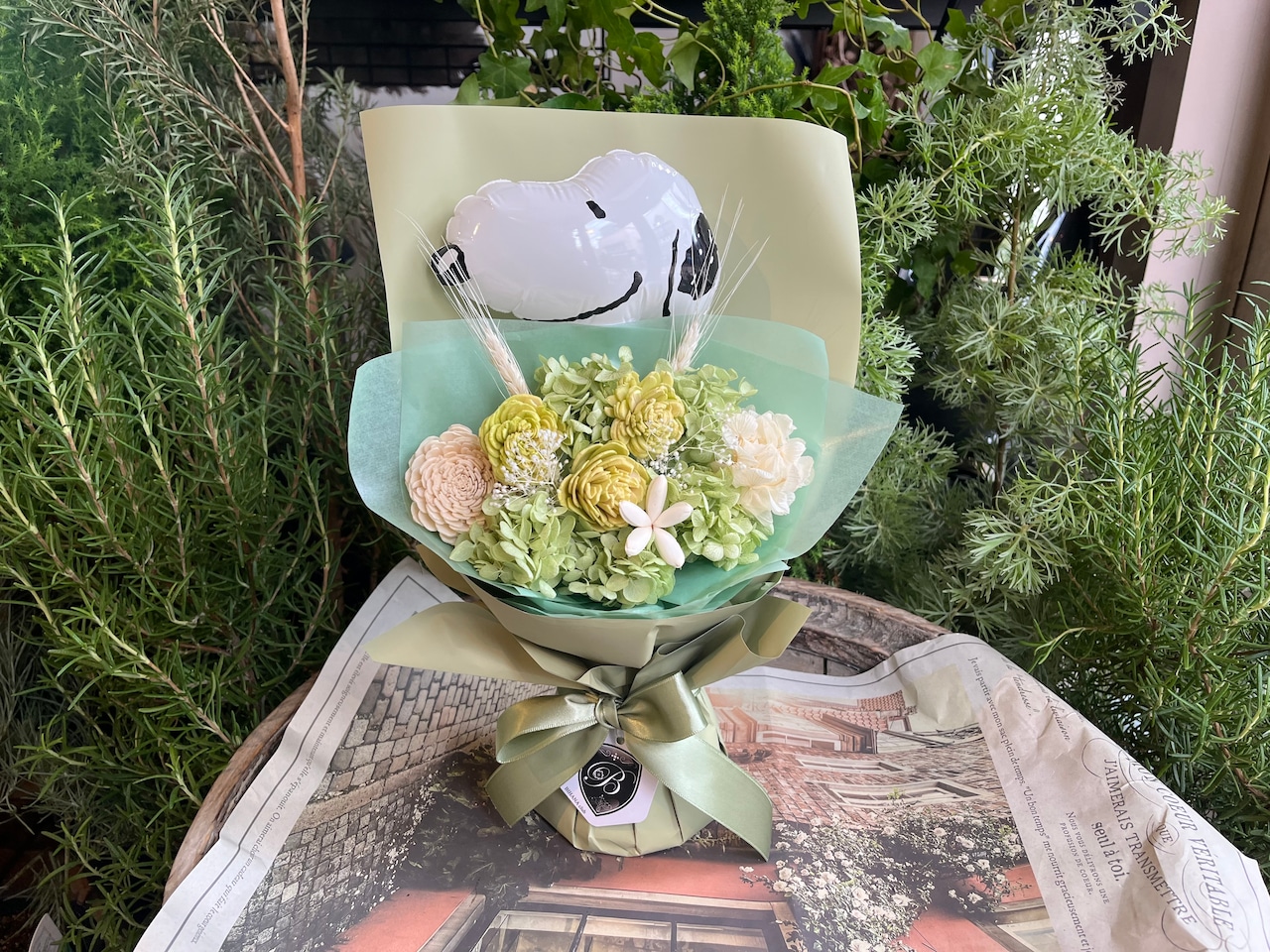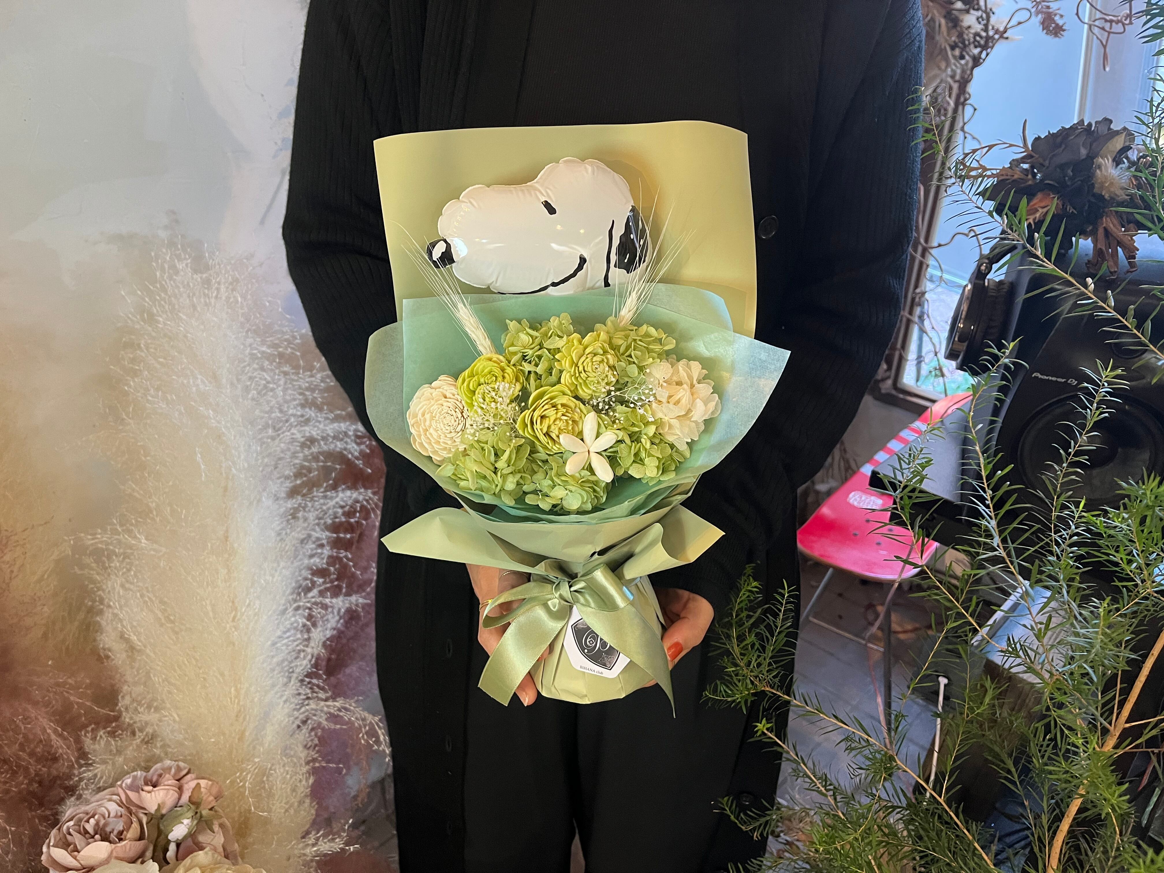 スヌーピーバルーン付スタンディングブーケ(自立型花束)フォレストグリーン×1