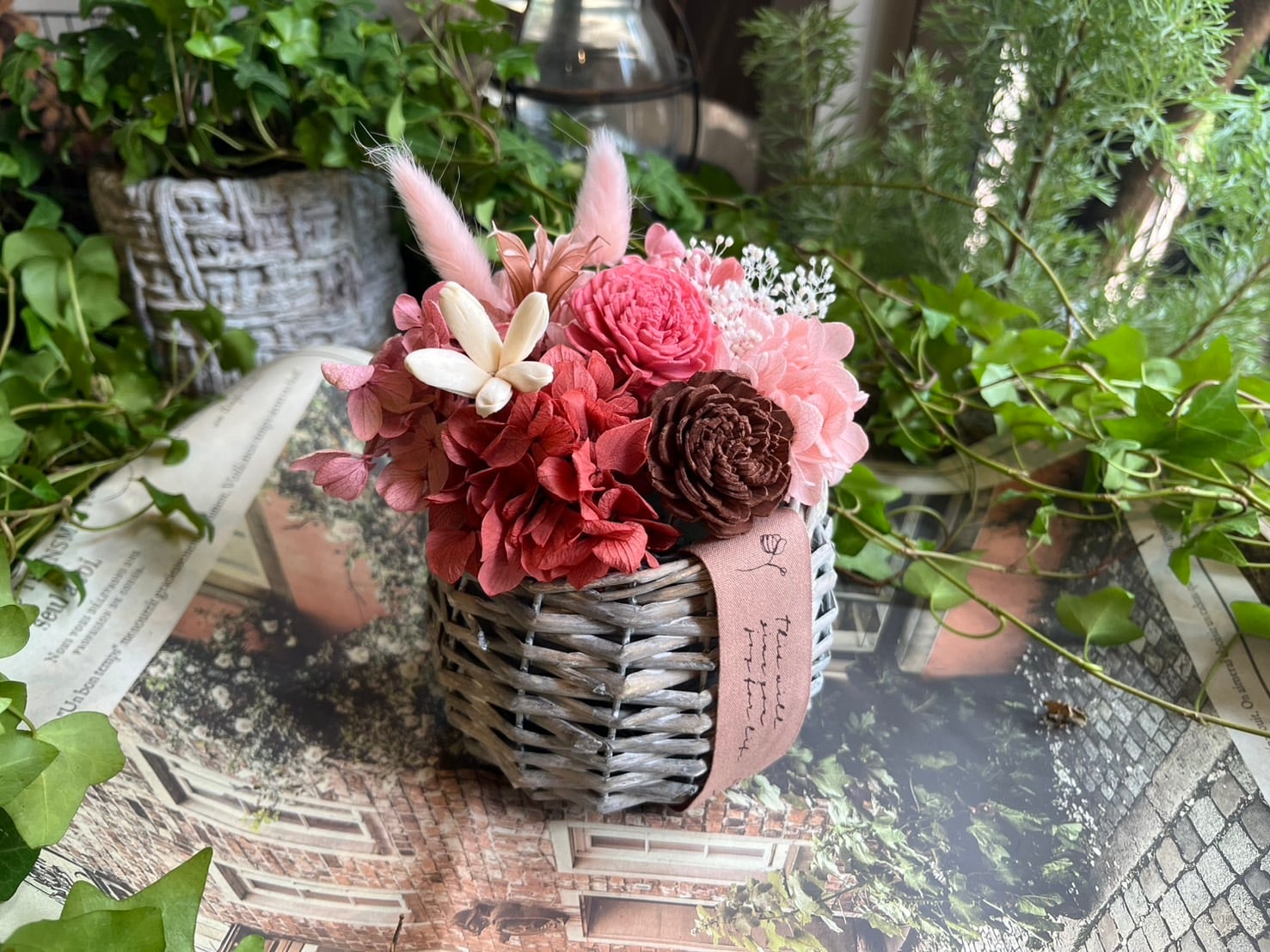 ・同梱物:プリザーブドフラワーの取扱説明書、主な花材説明書付き