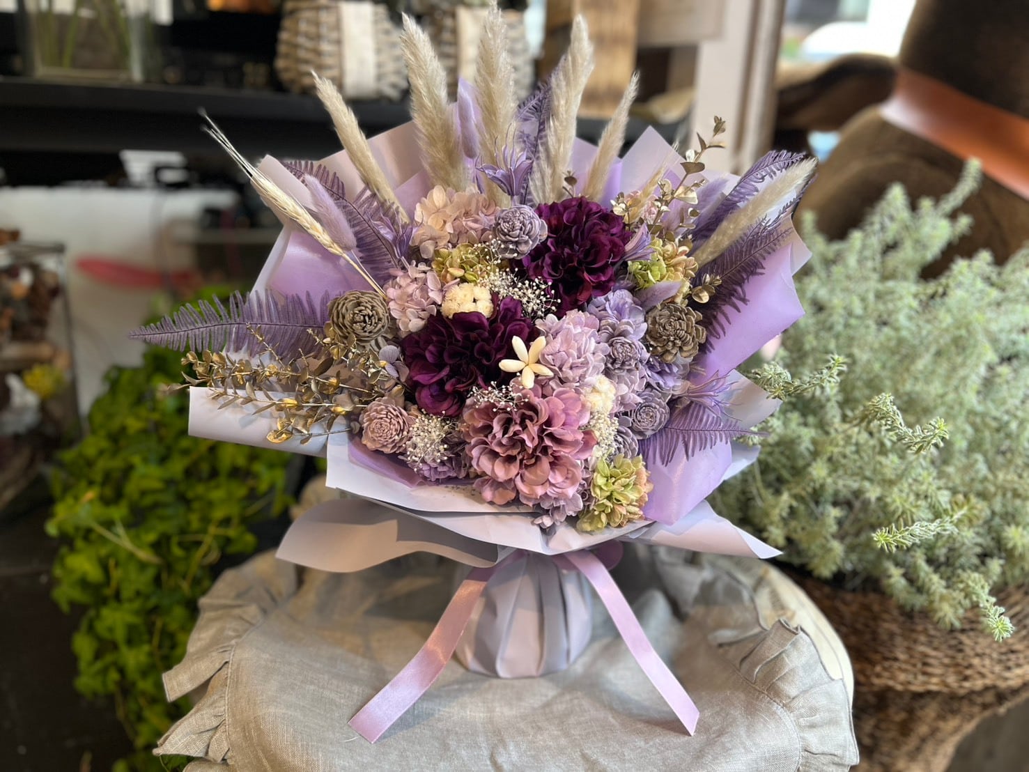 スタンディングブーケ(自立型花束)パープルラグジュアリー×1