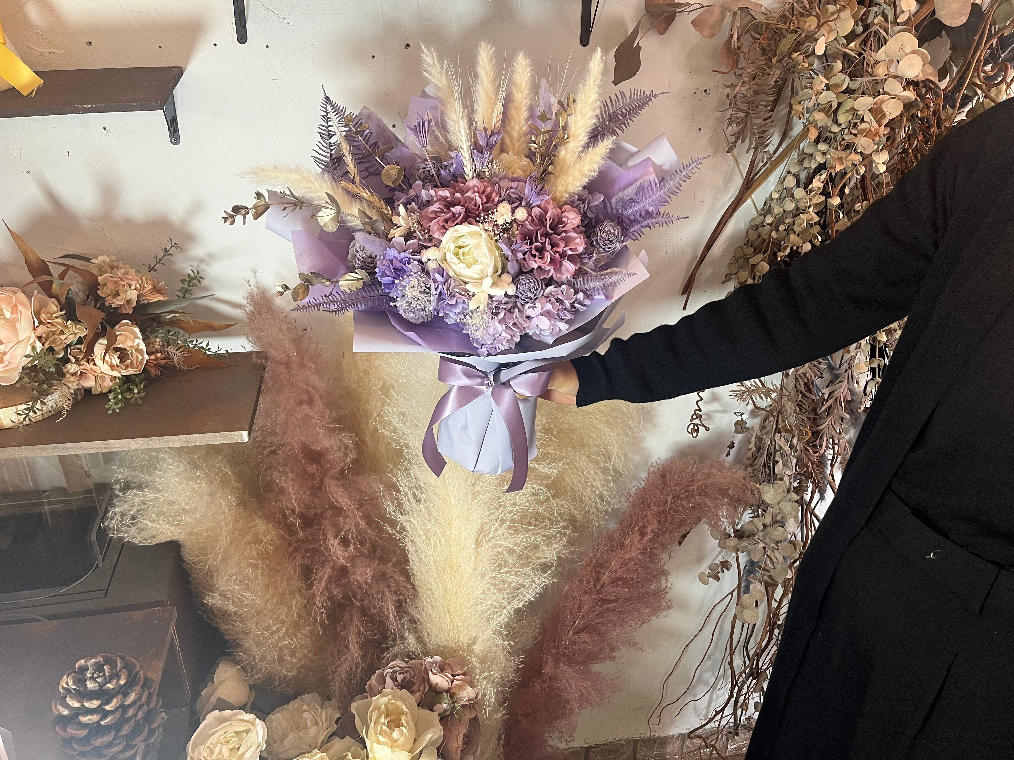 新宿ヒルトンホテル、南青山の花屋でのウェディング・ギフトフラワーなど、長年の現場経験で磨いた “色合わせ・質感・構成” の技術をそのままプリザーブドフラワーにも。