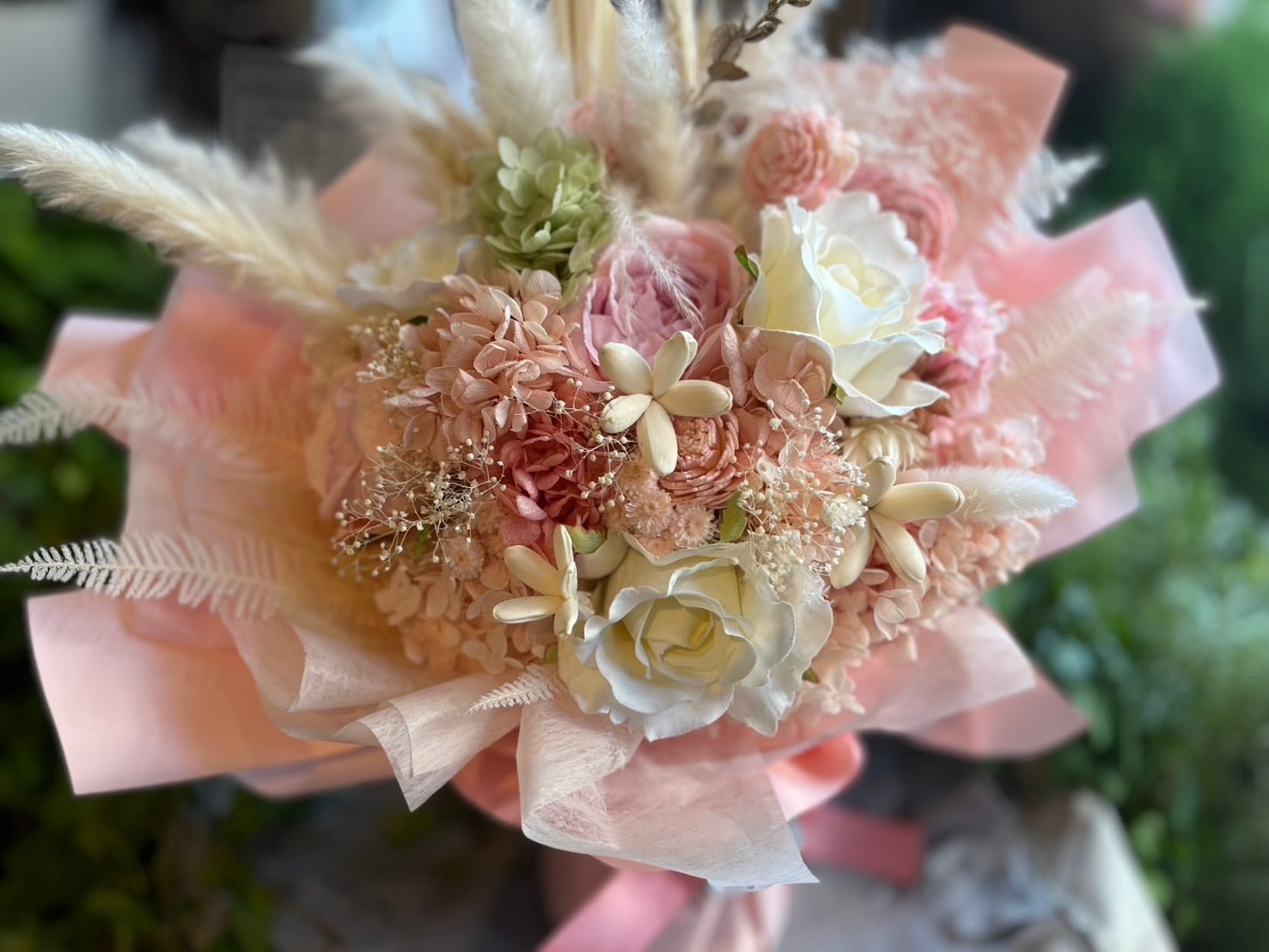 ・同梱物:プリザーブドフラワーの取扱説明書、主な花材説明書付き