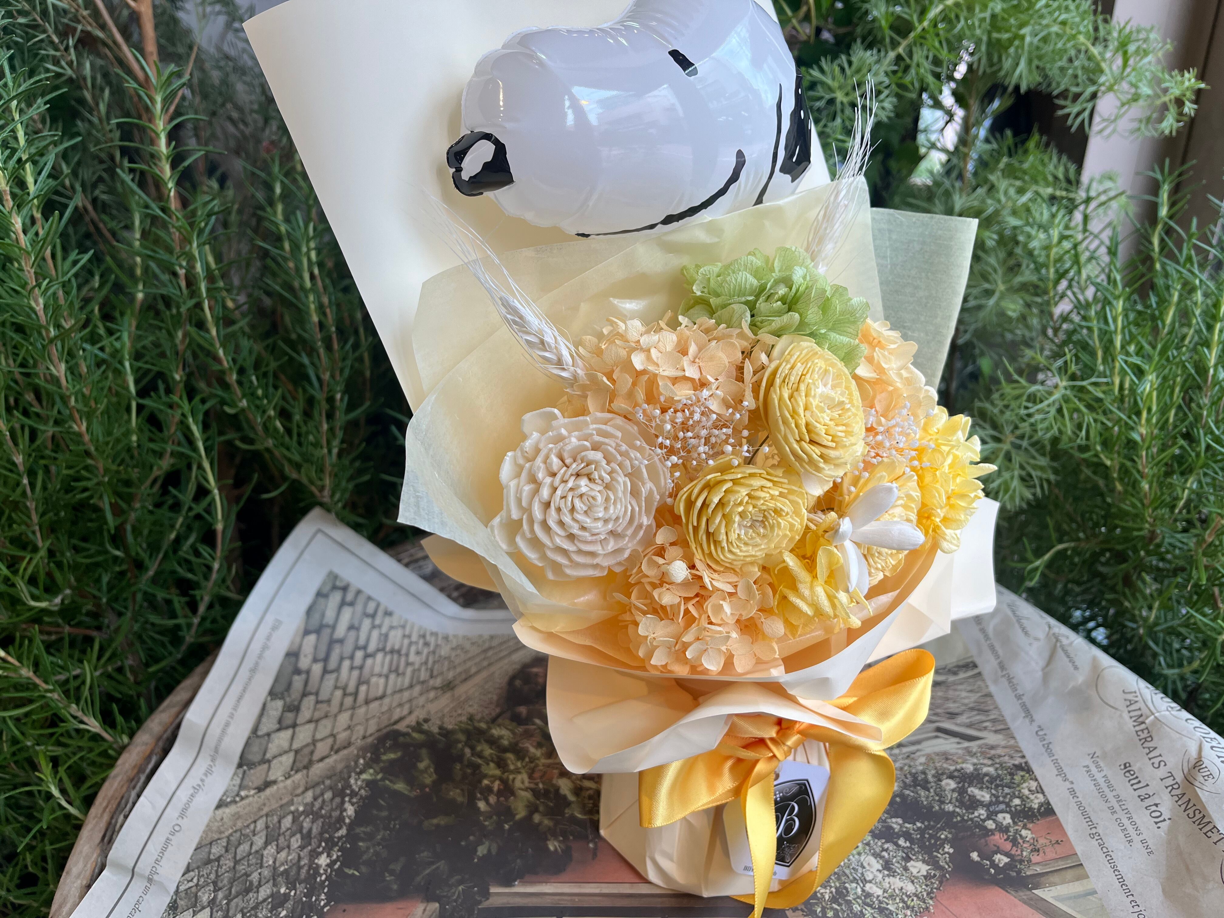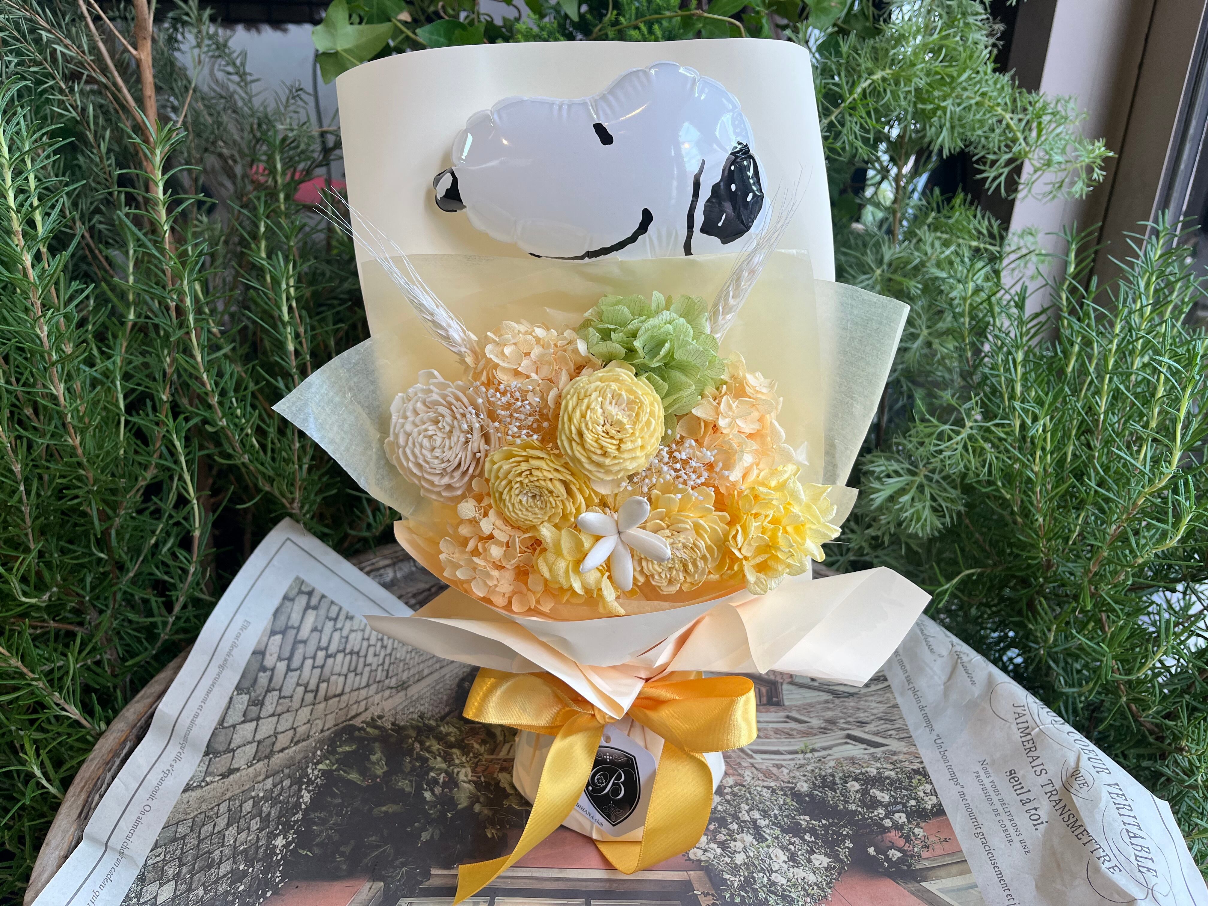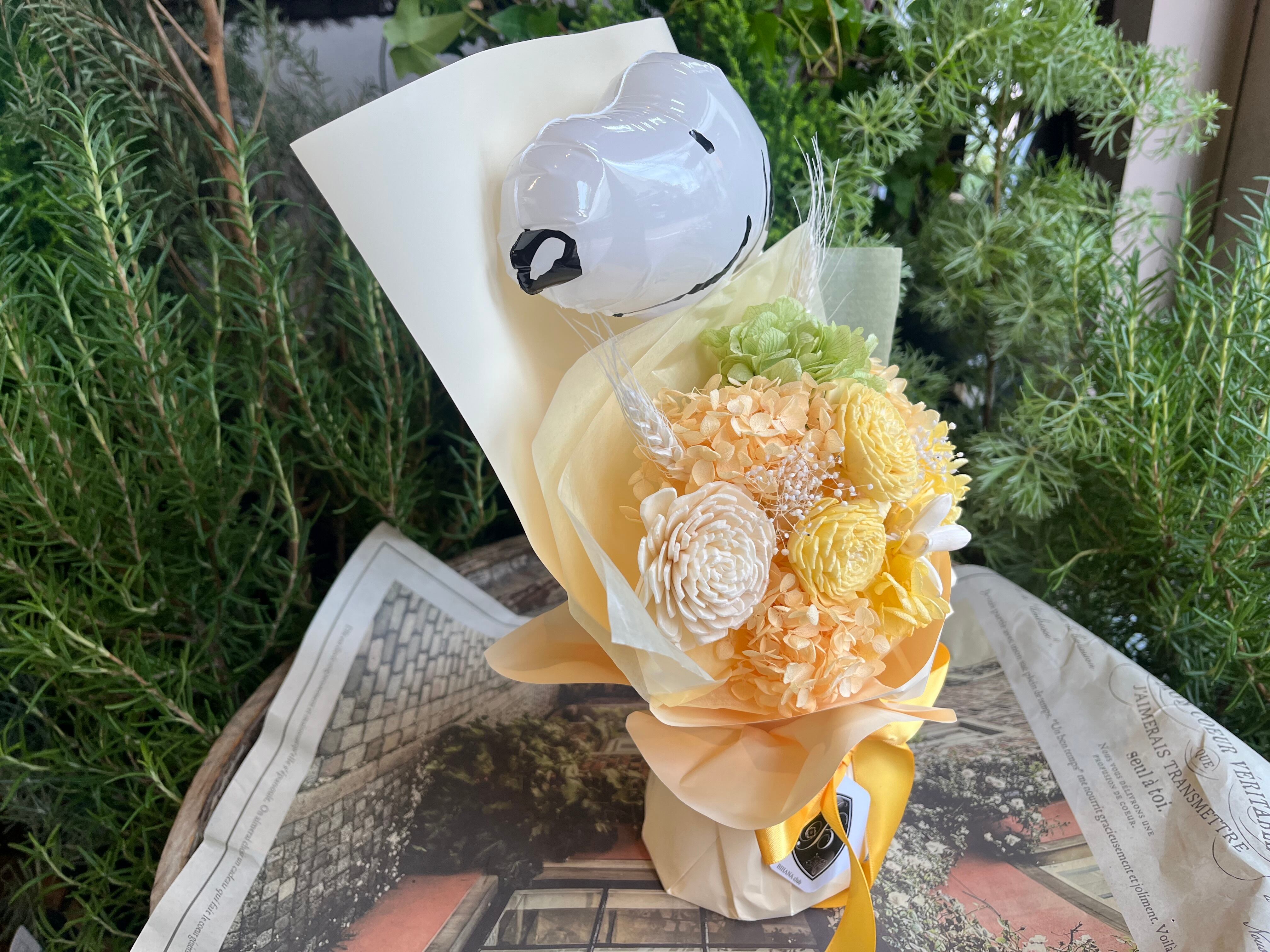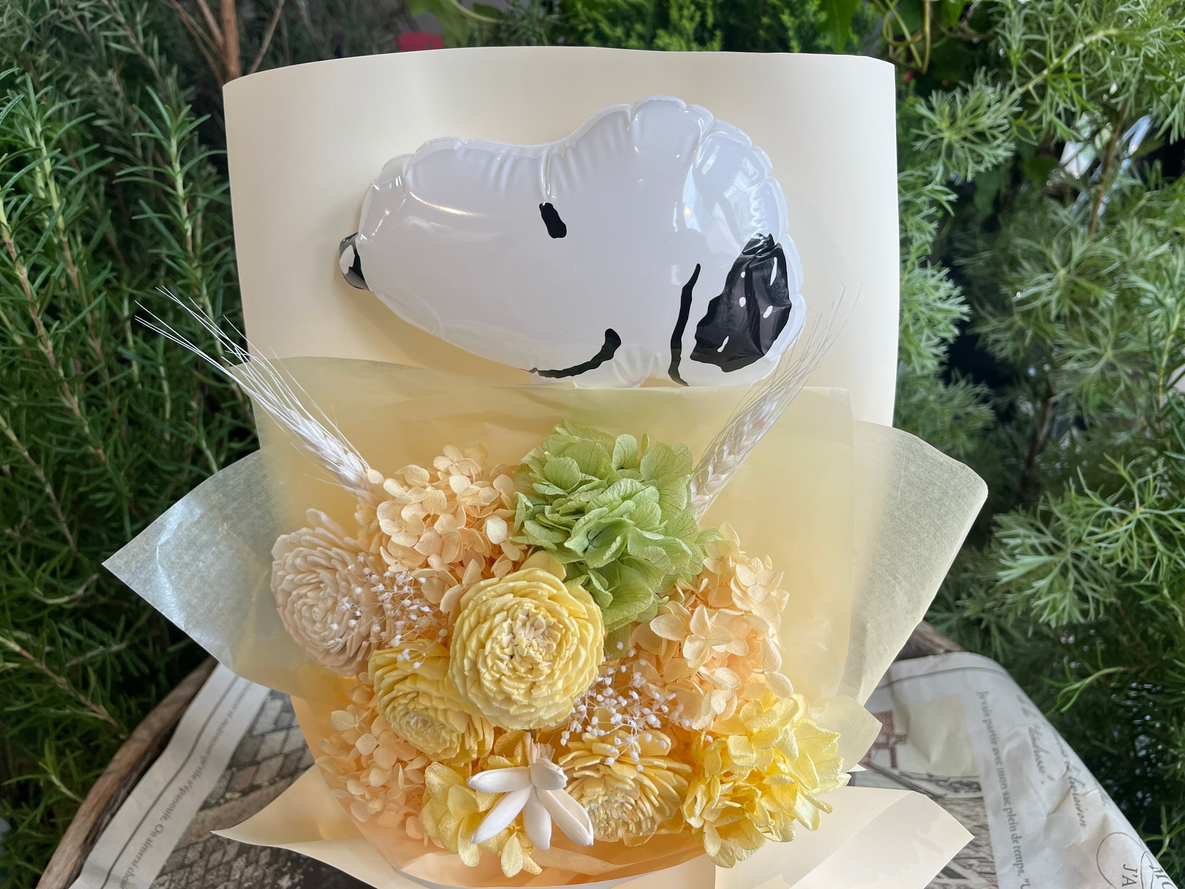 言葉にするのが照れくさい、心からの祝福と愛情を、世界で一番愛されるビーグル犬と「枯れない花」に込めて贈ります。