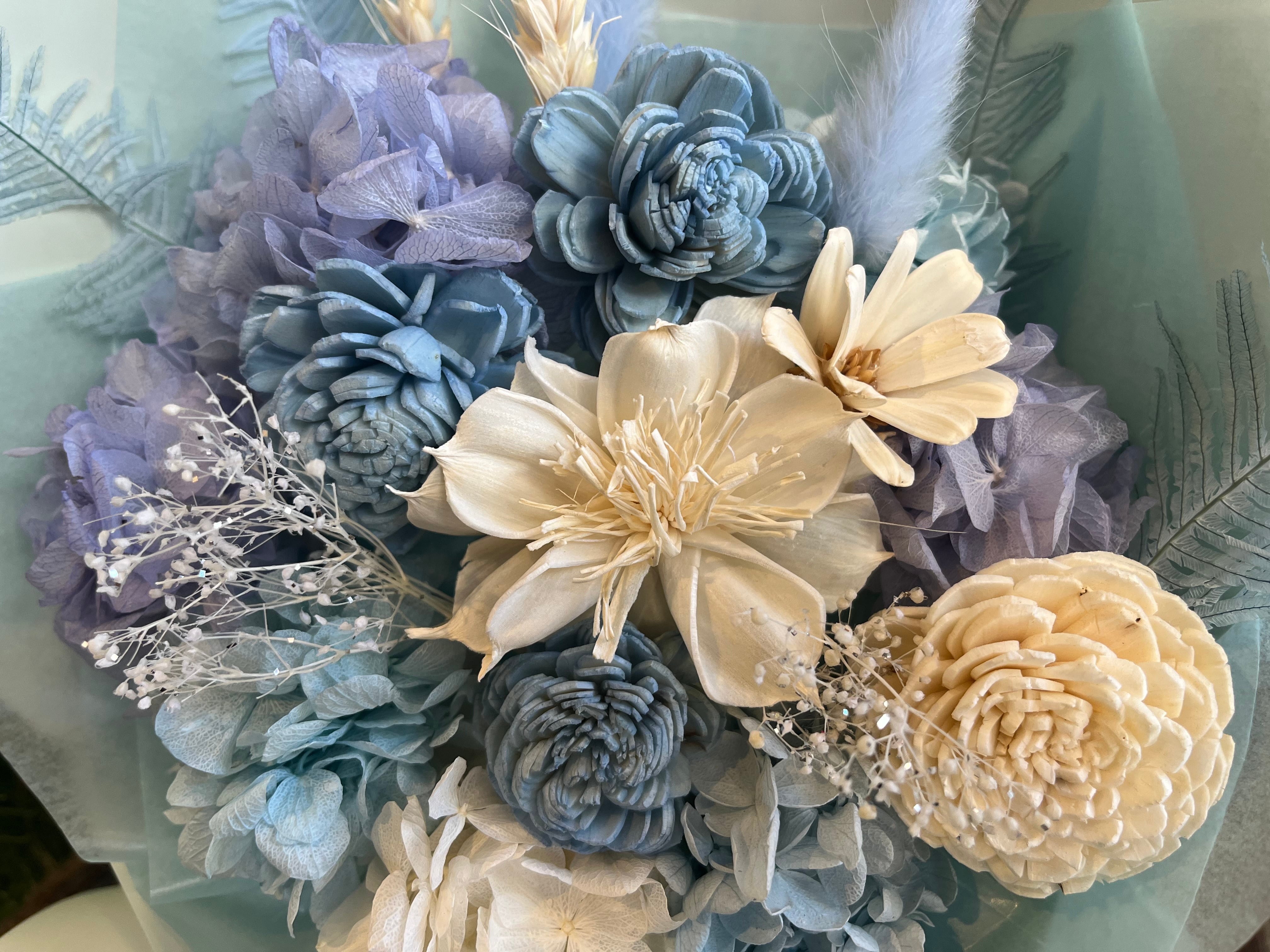 同梱物:プリザーブドフラワーの取扱説明書、主な花材説明書付き