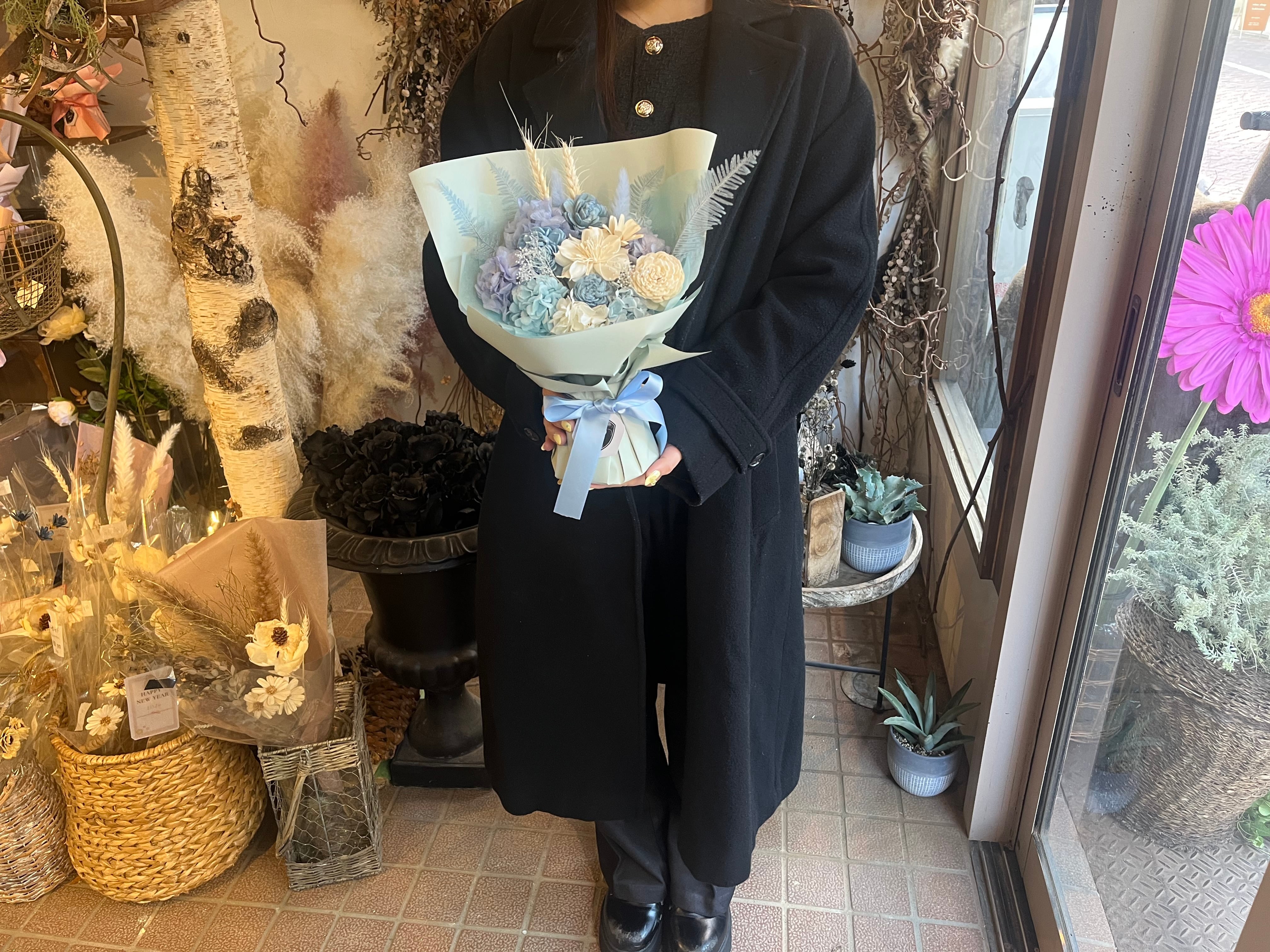 プリザーブドフラワーのスタンディングブーケです。