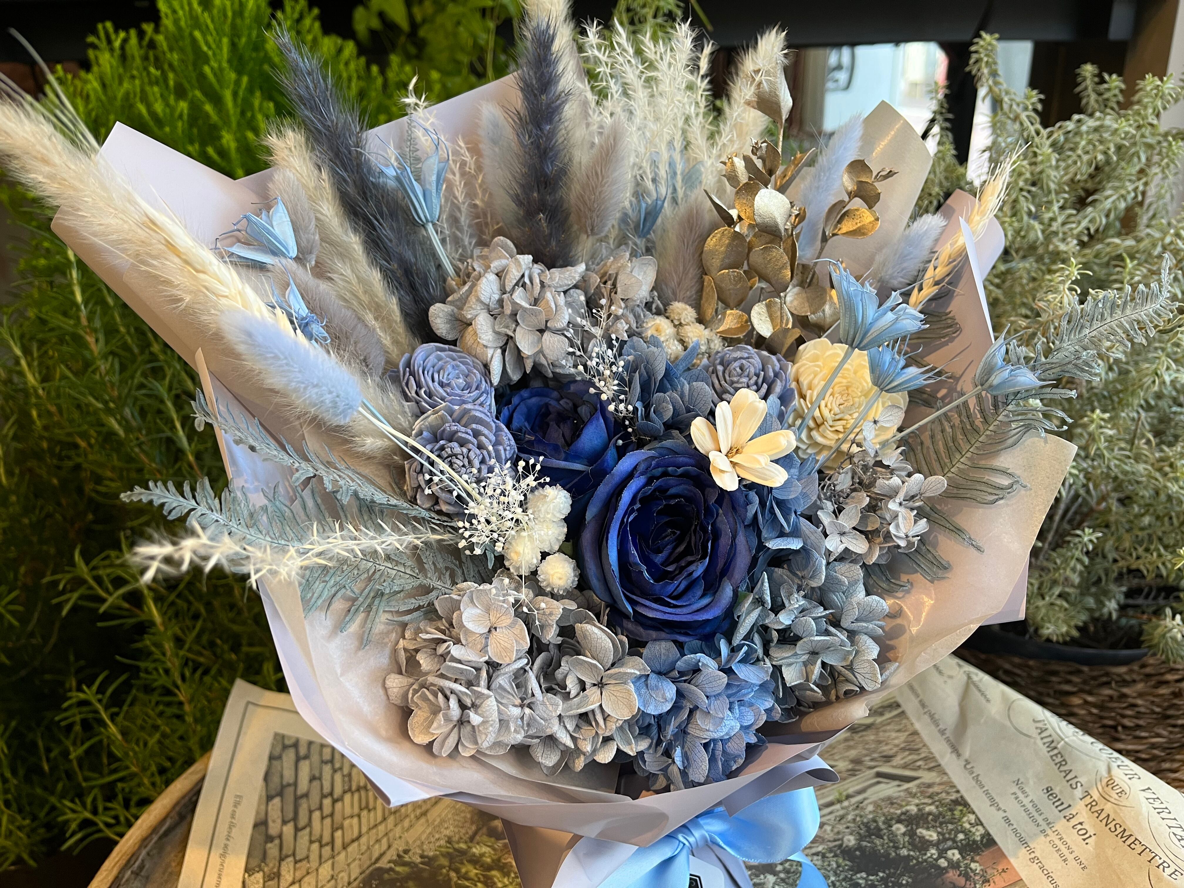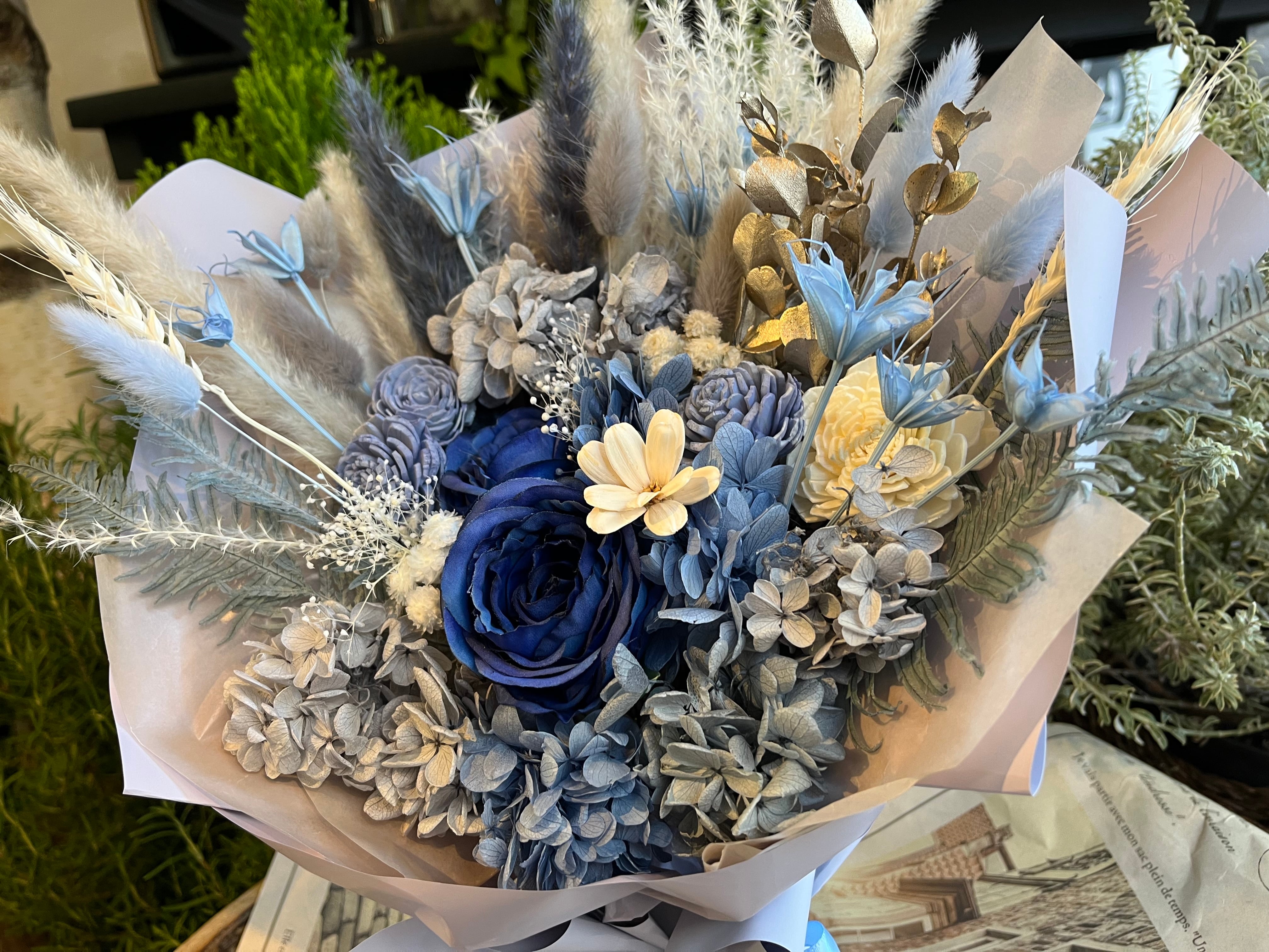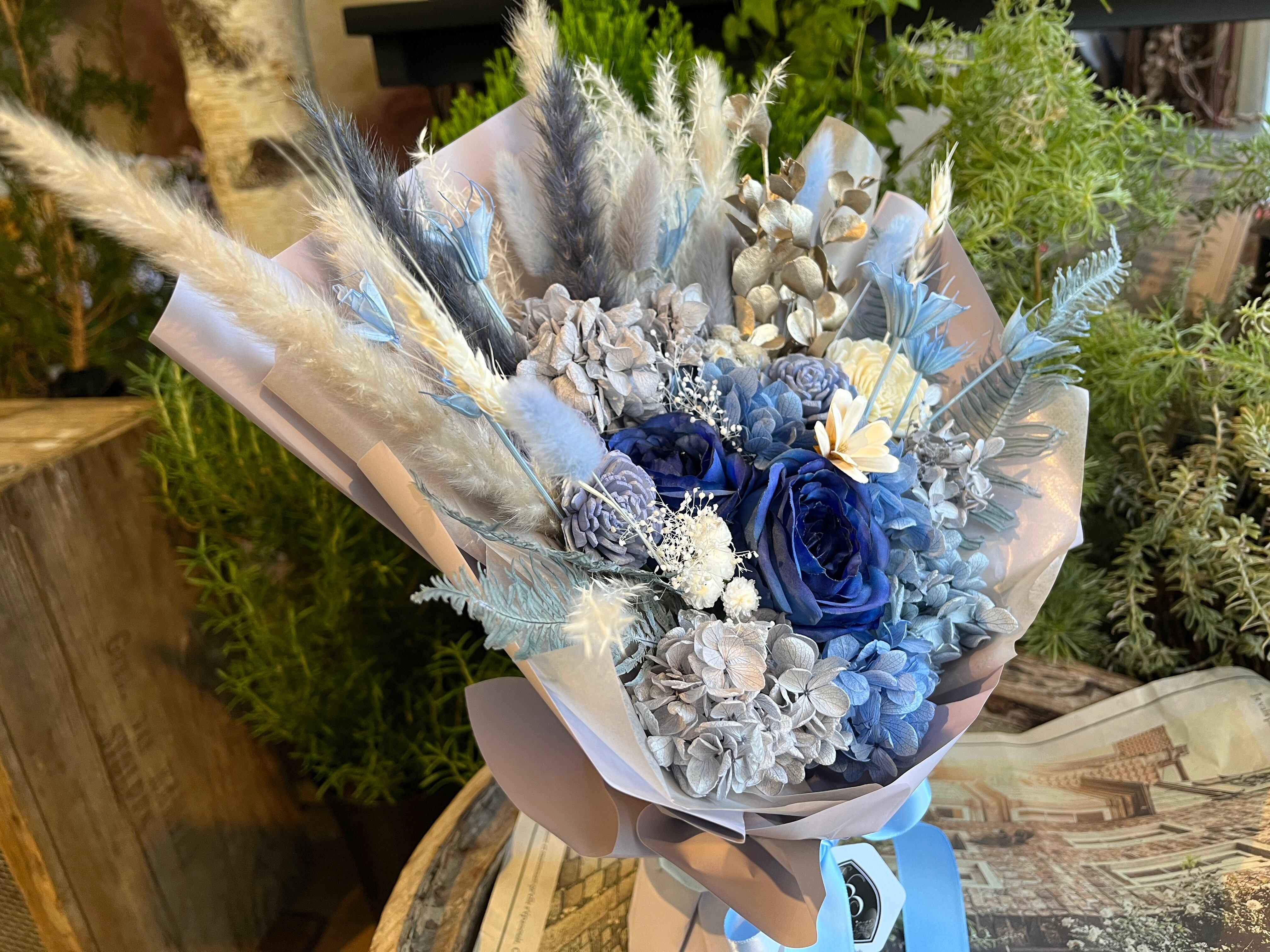 【商品名】 スタンディングブーケ(自立型花束)アイスブルーグラデーション ×1