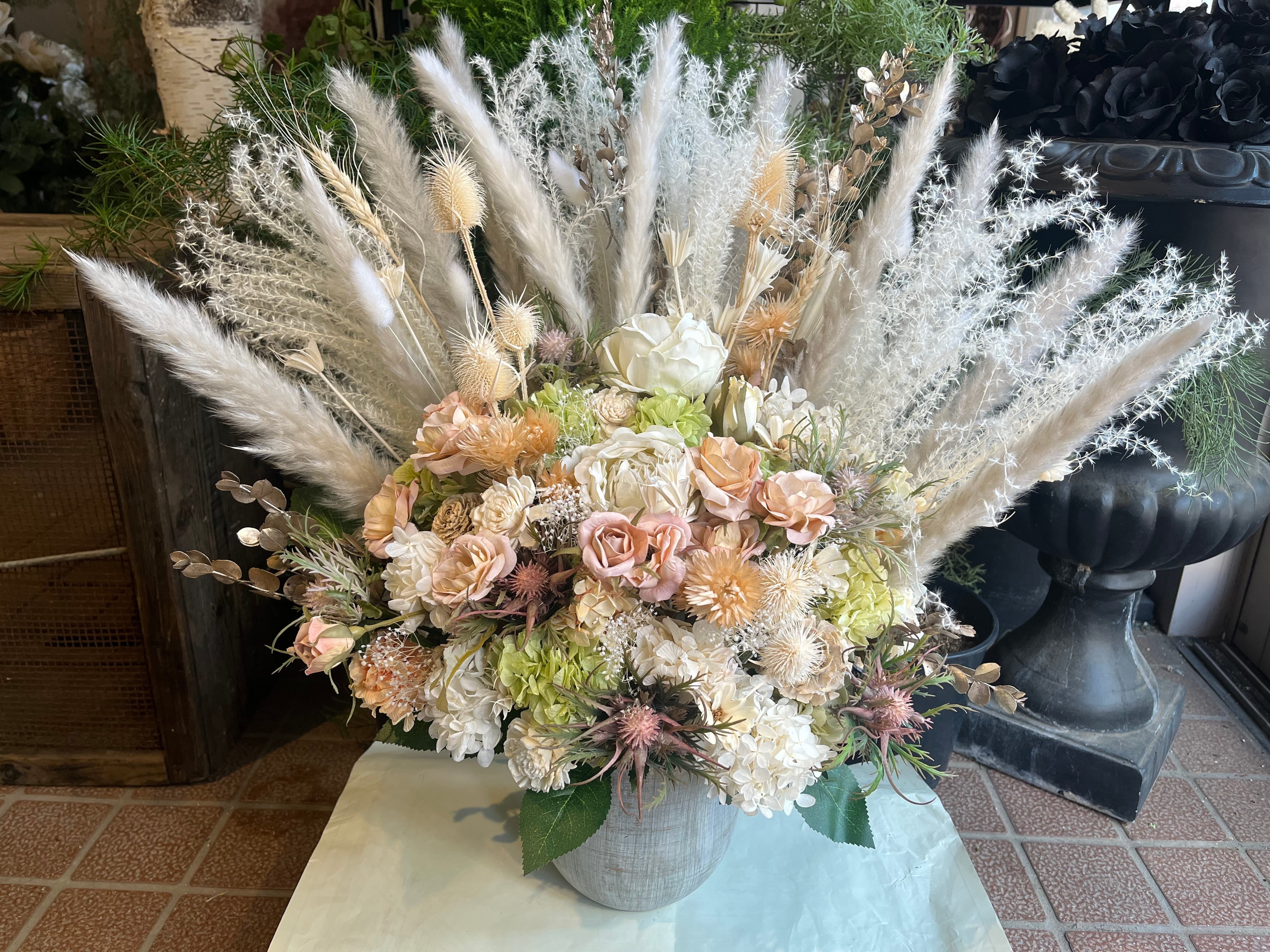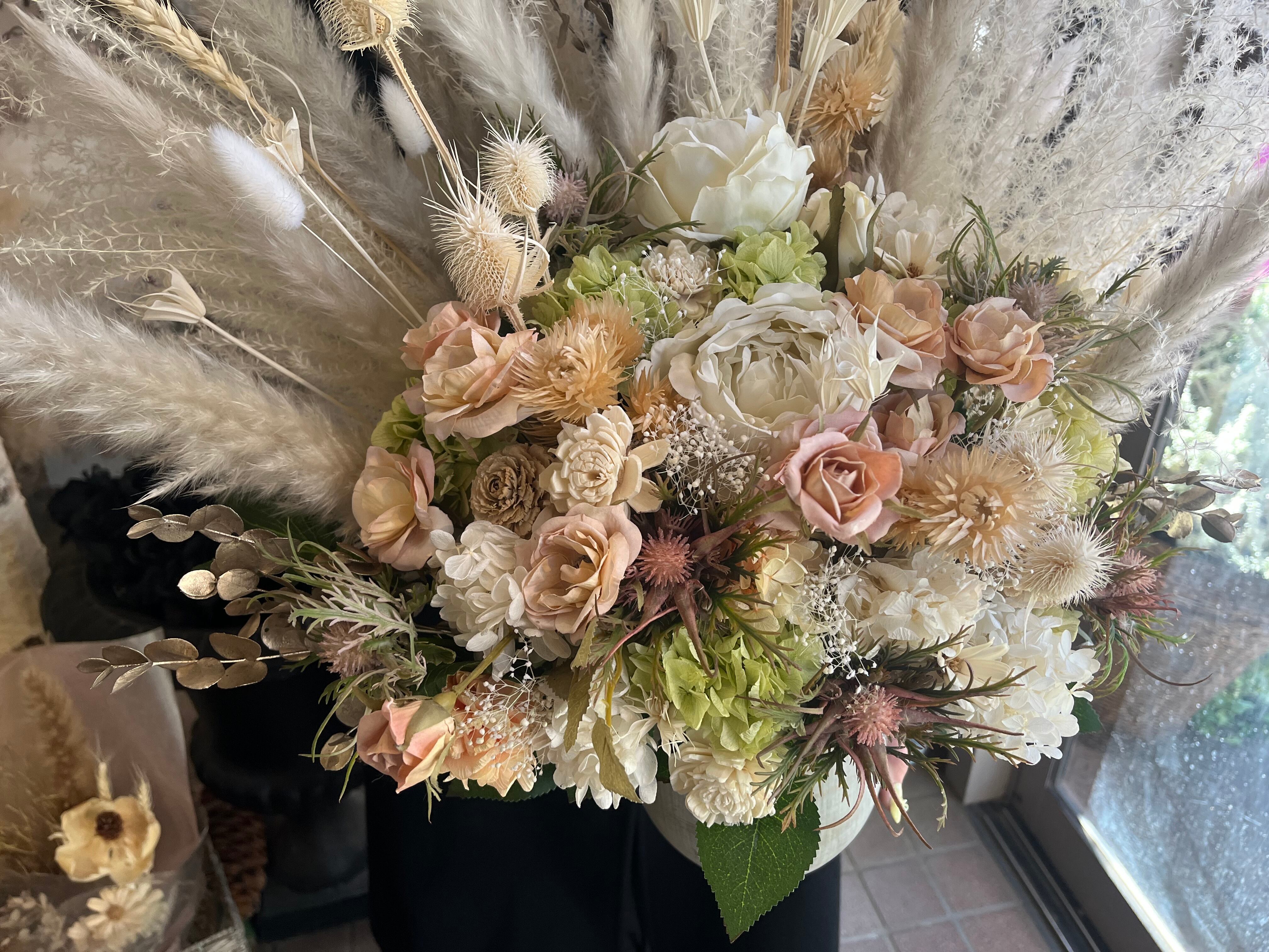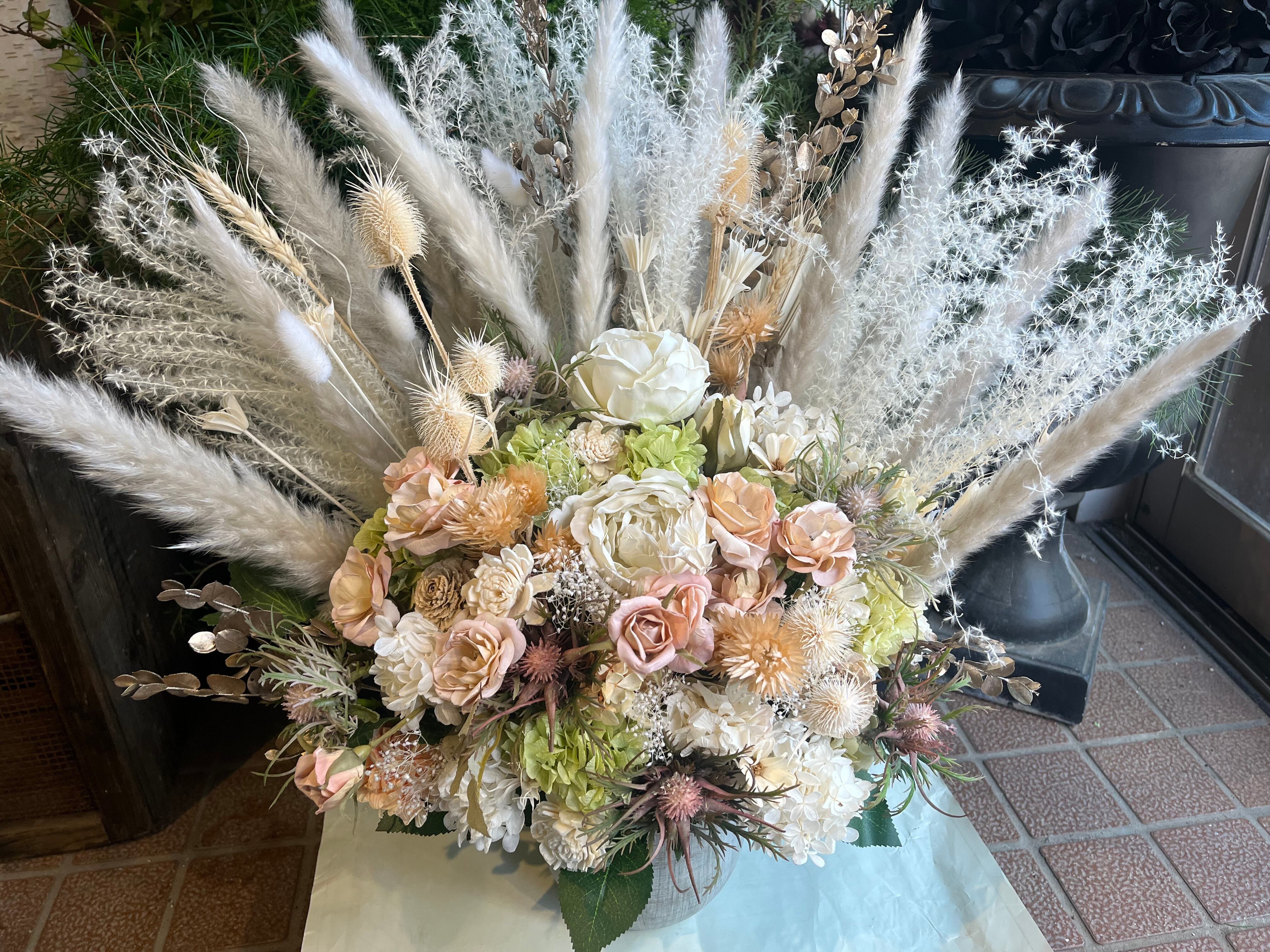 華やかで上品な大型プリザーブドフラワーアレンジメント。
