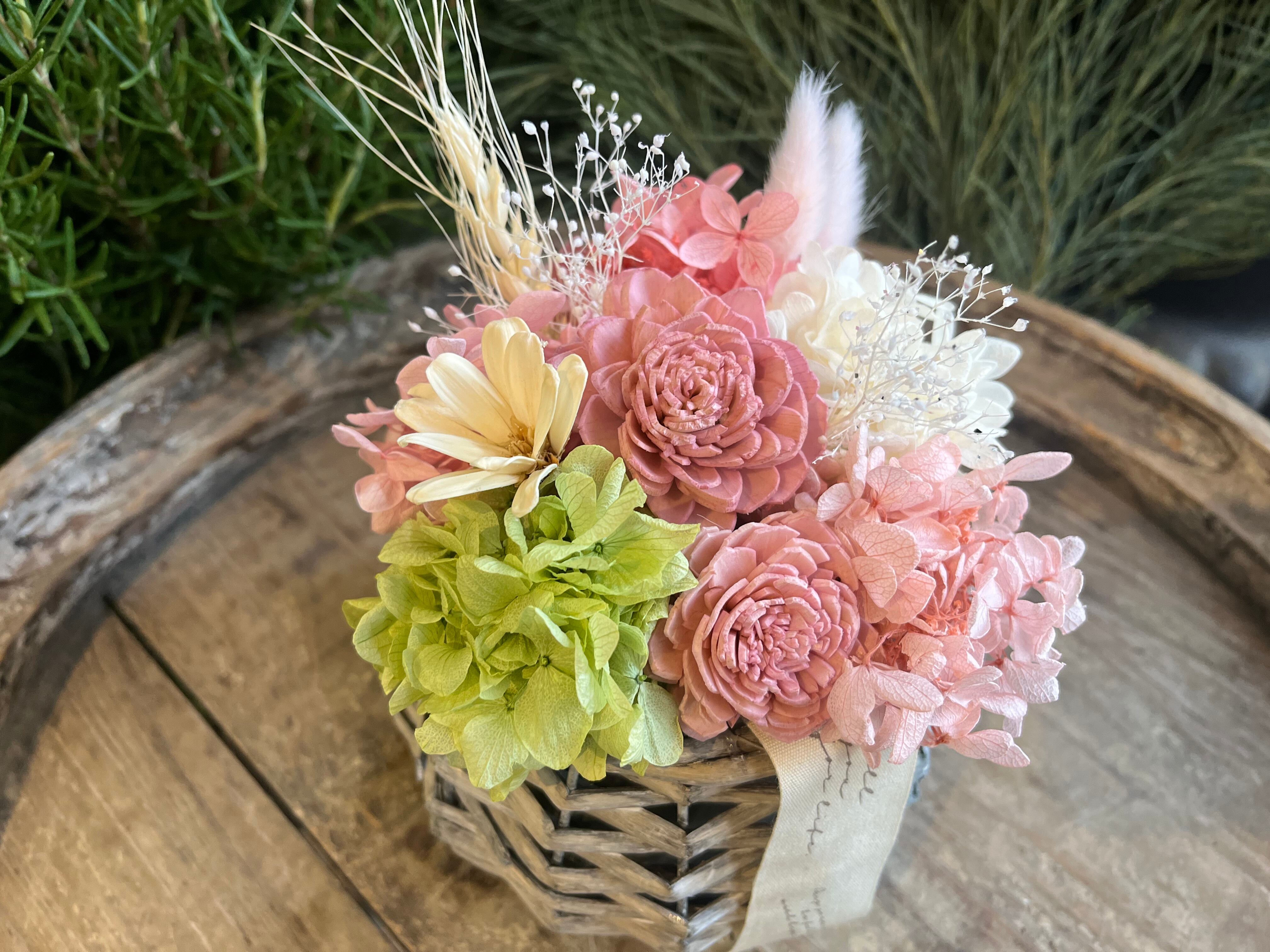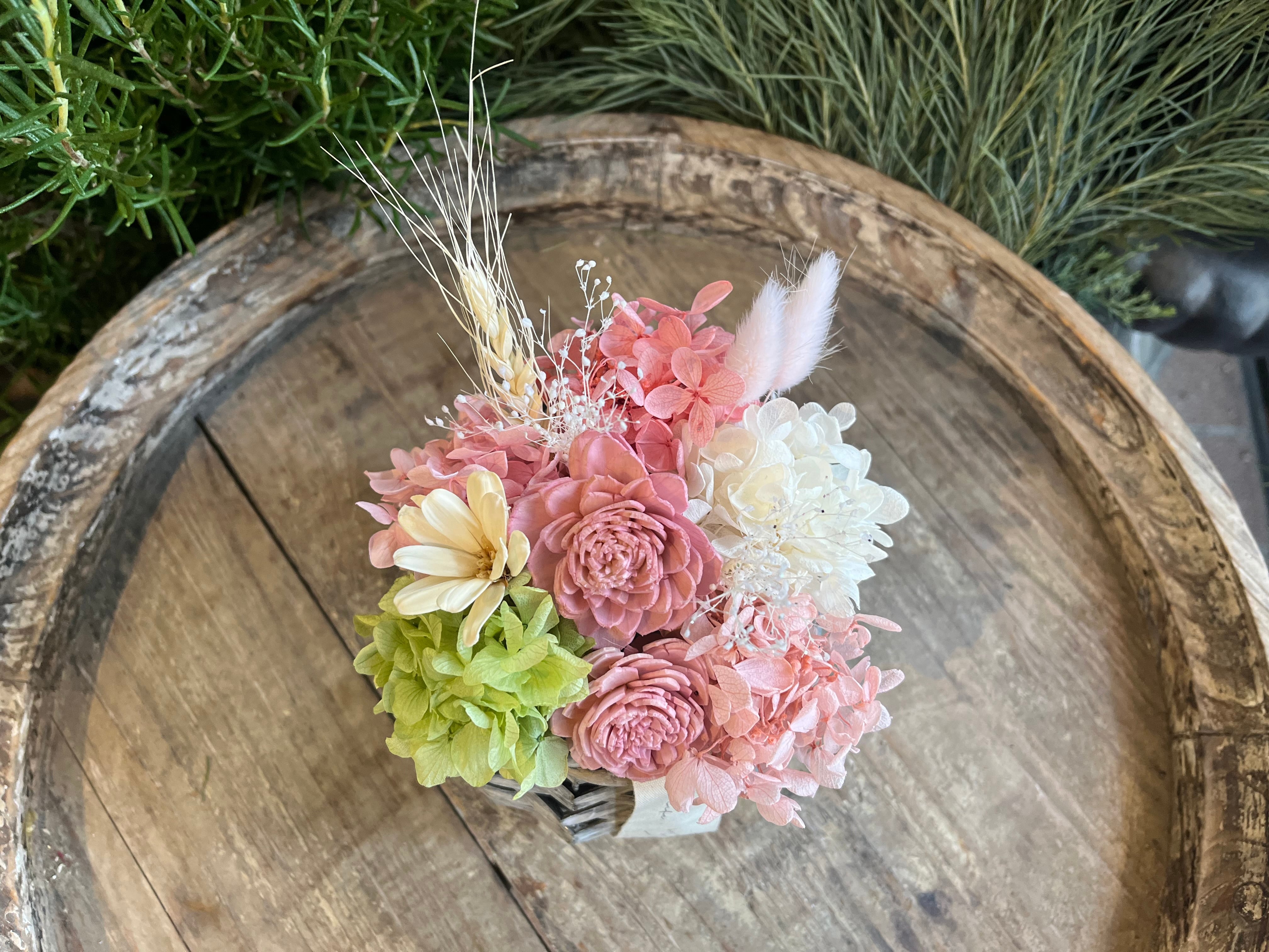 アレンジメント(かご付) フレッシュピンク(S)×1