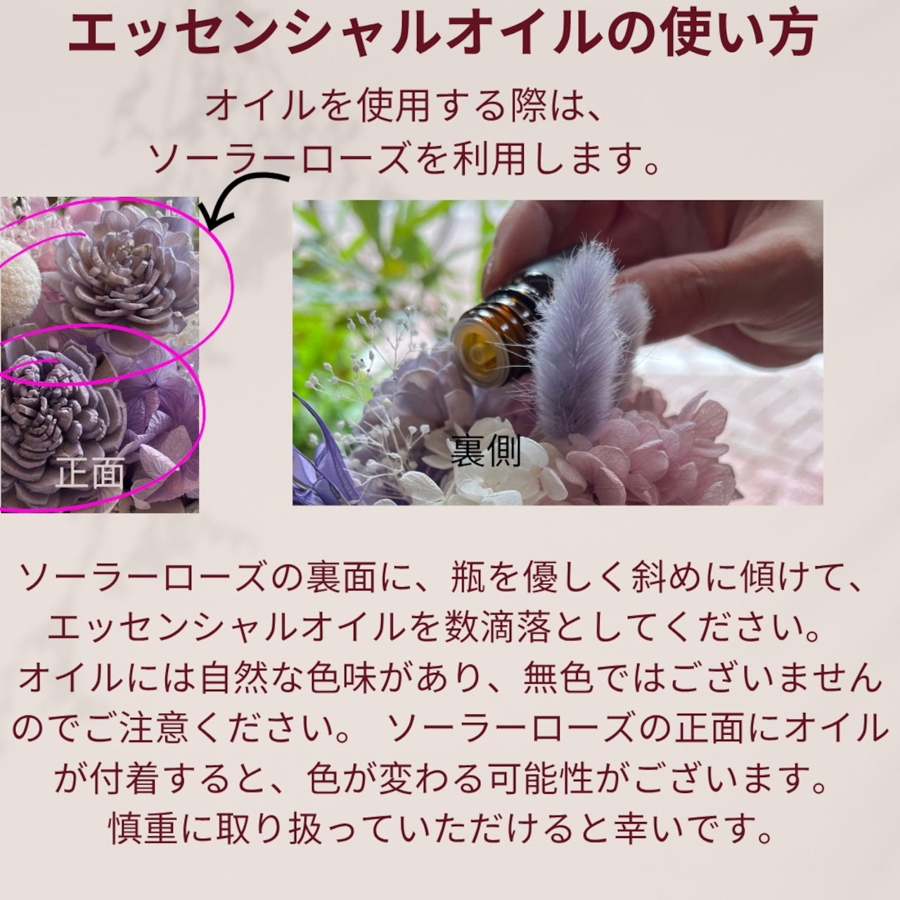 ご注文時に、約7日間持続する5種類のエッセンシャルオイルから、贈る相手に合わせた特別な香りをプラスできます。