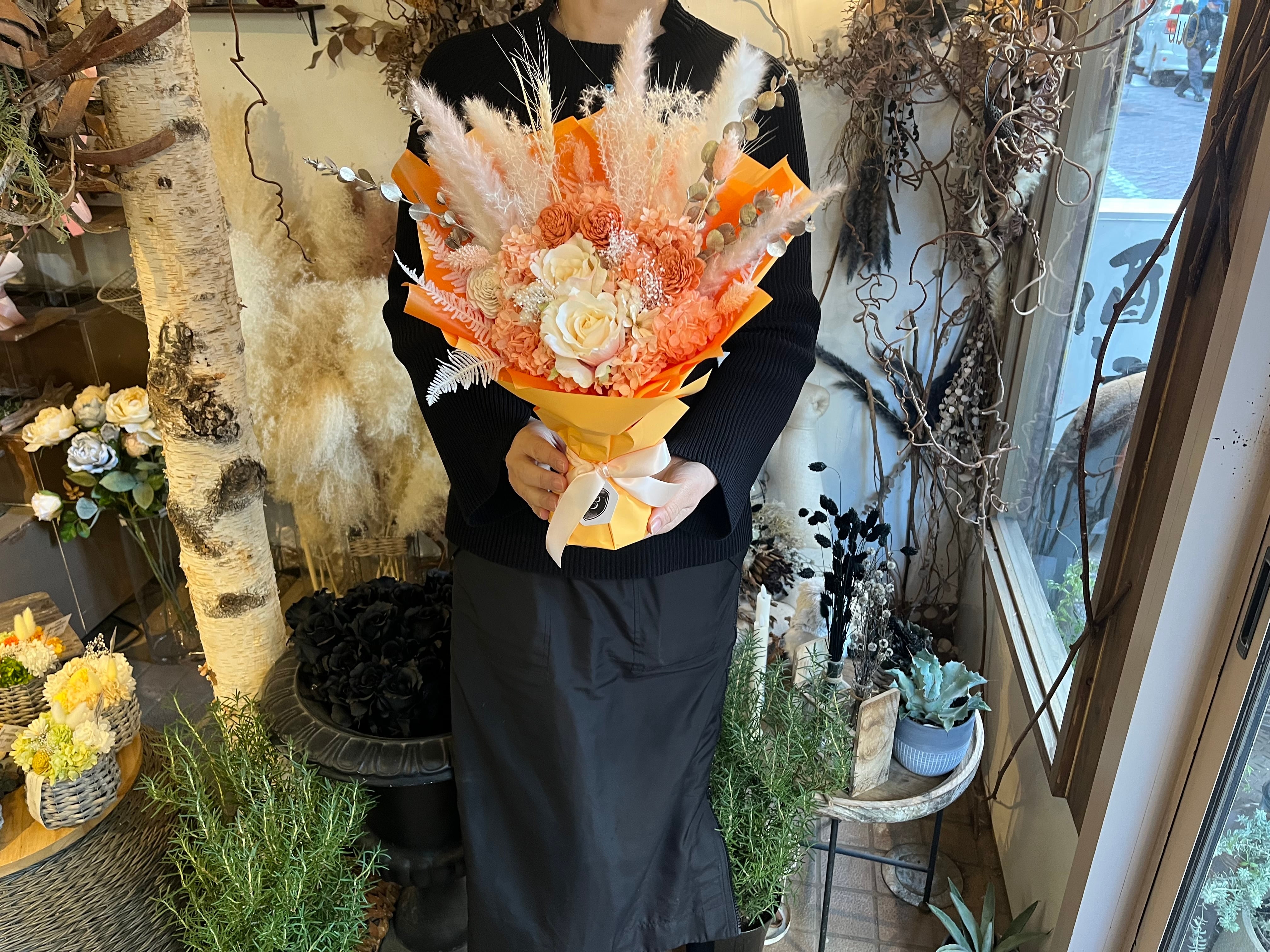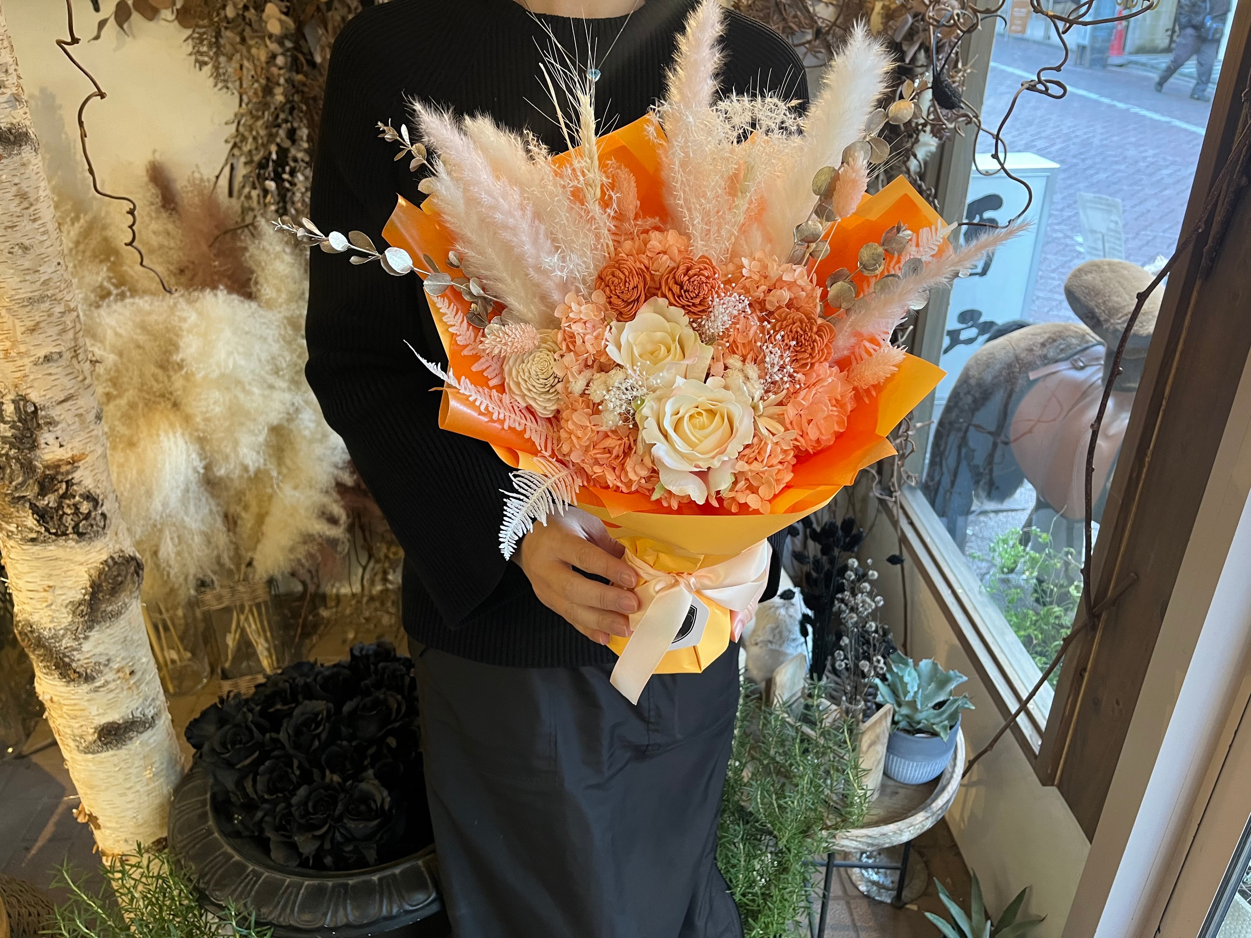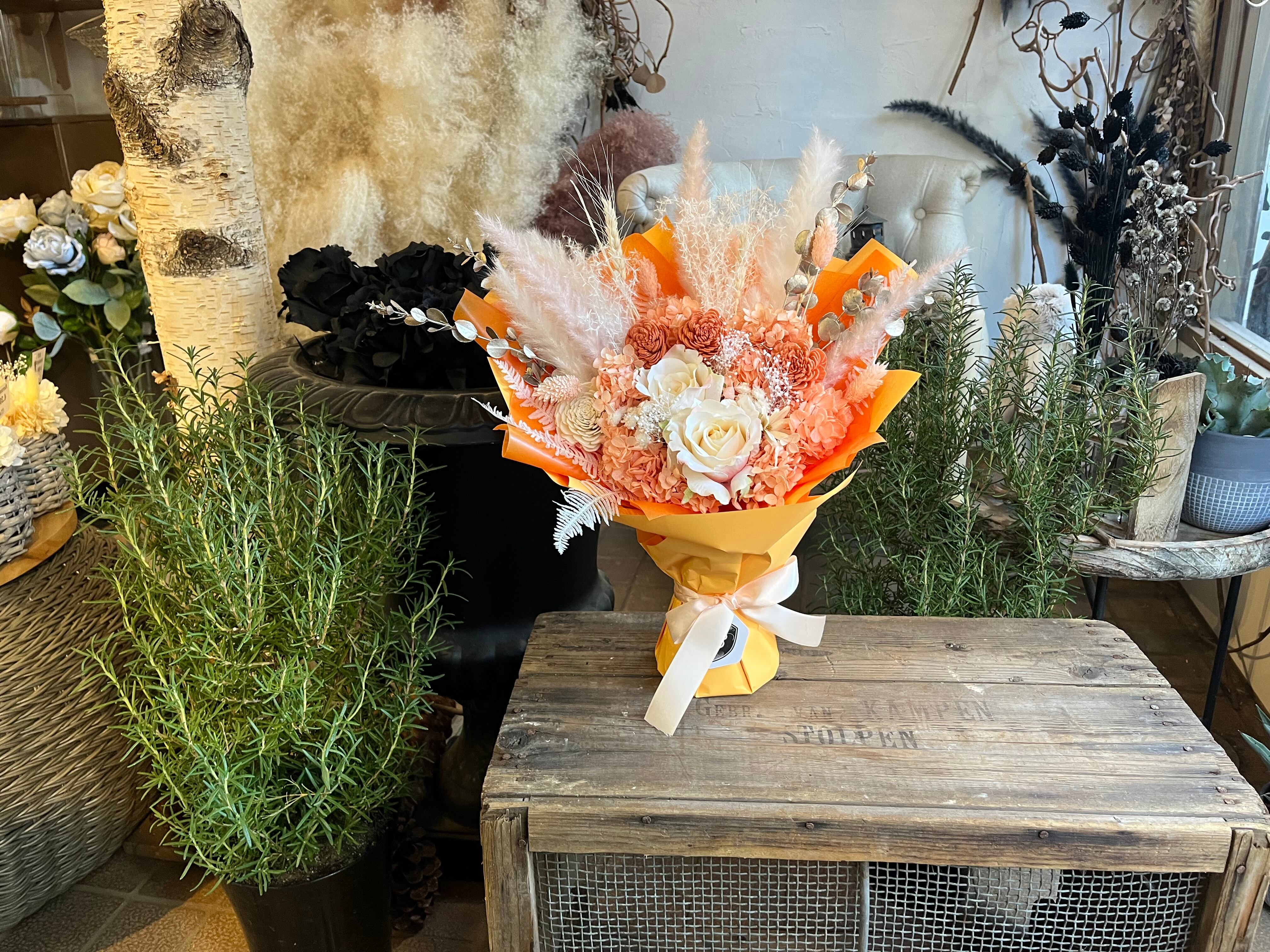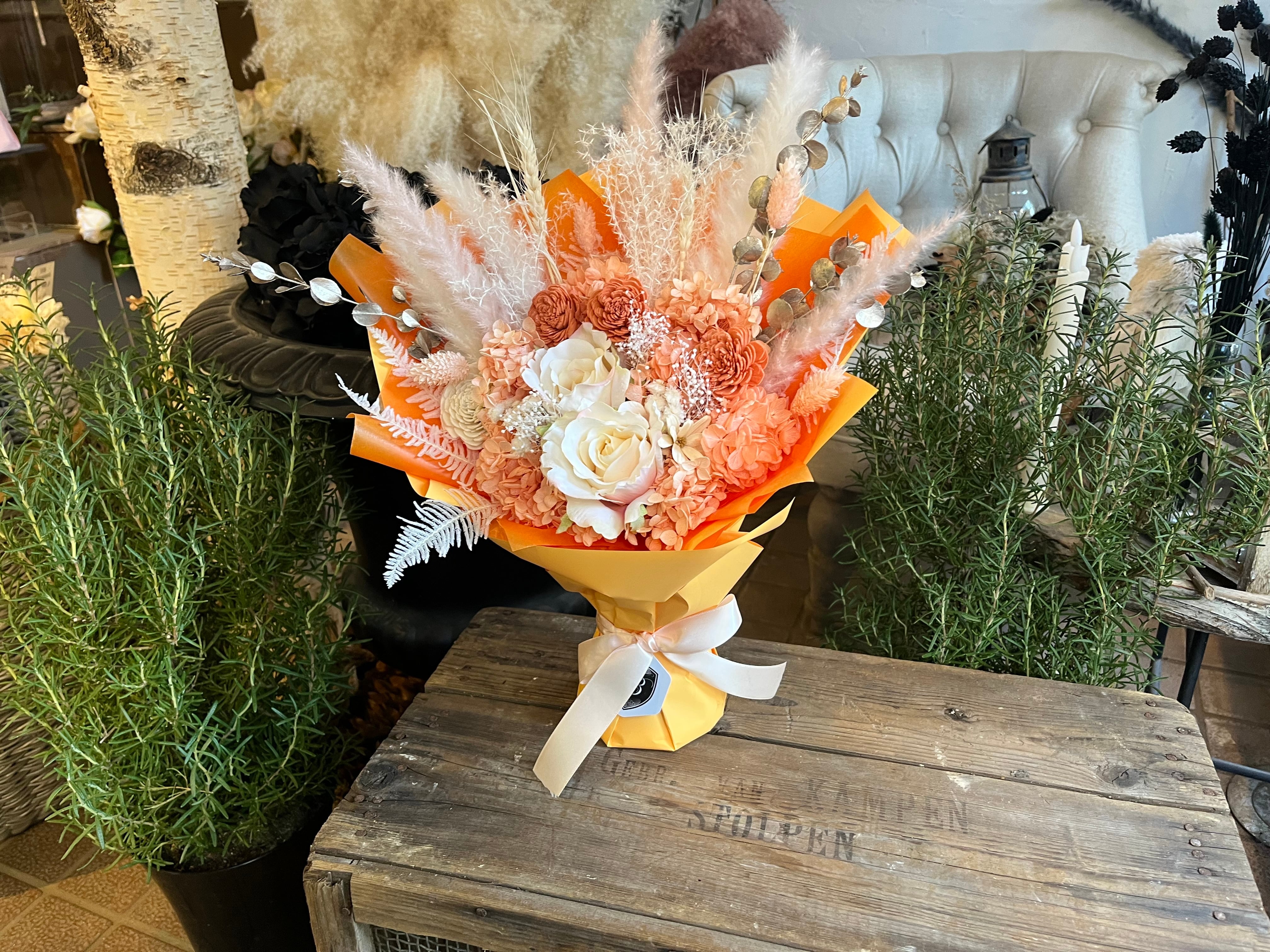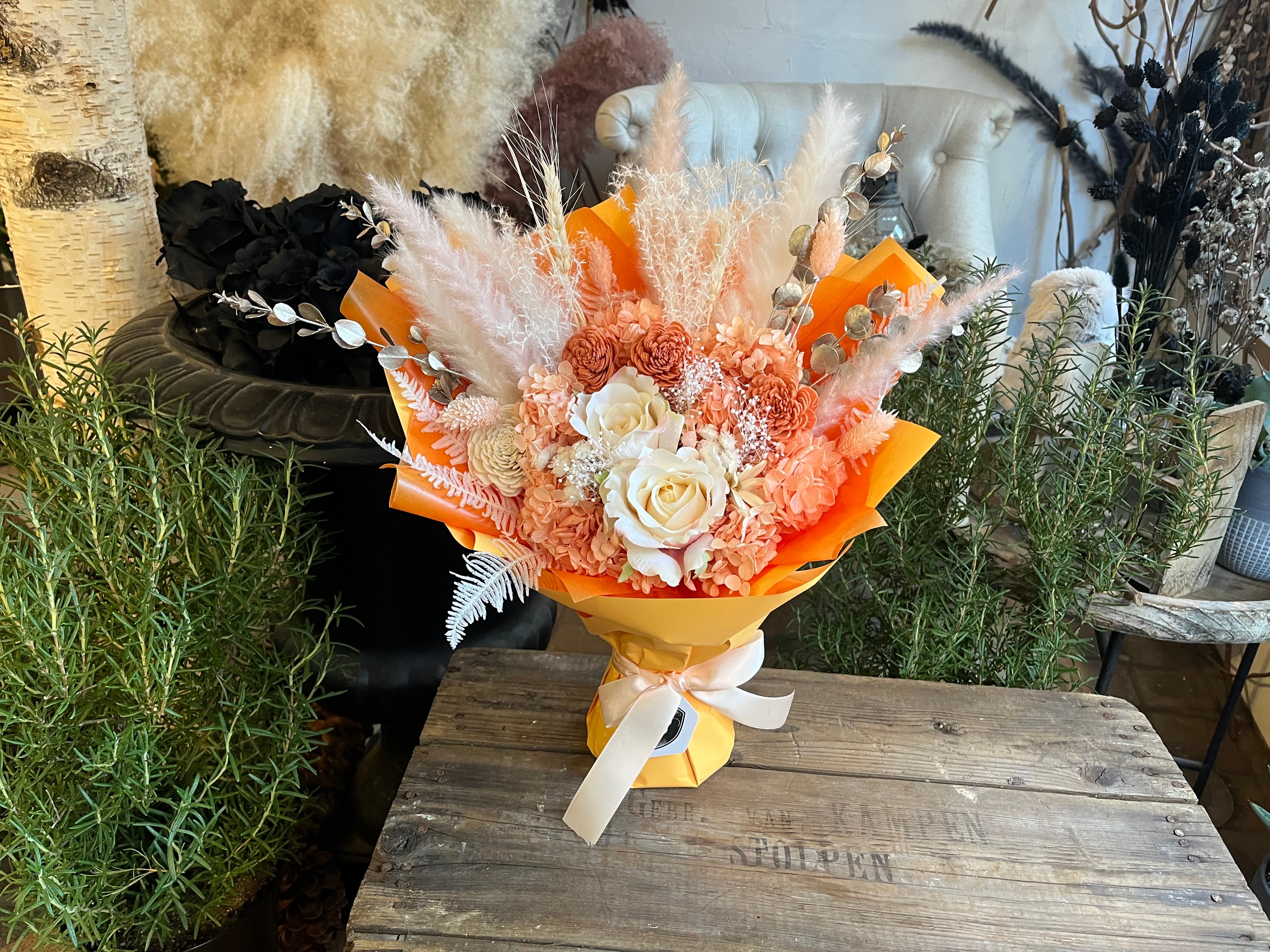 プリザーブドフラワー スタンディングブーケ(自立型)アプリコットオレンジ|退職・送別・誕生日・法人ギフトに