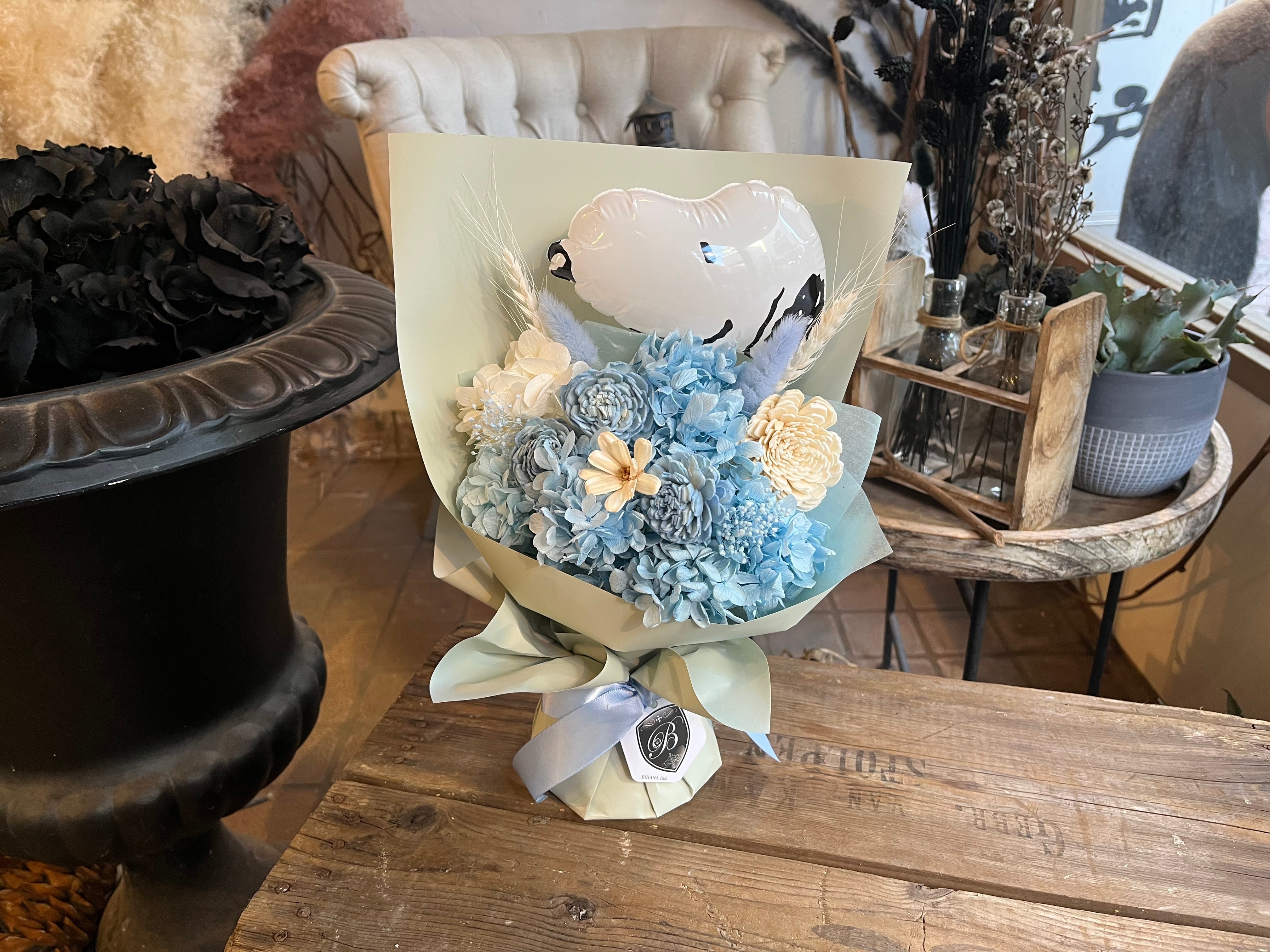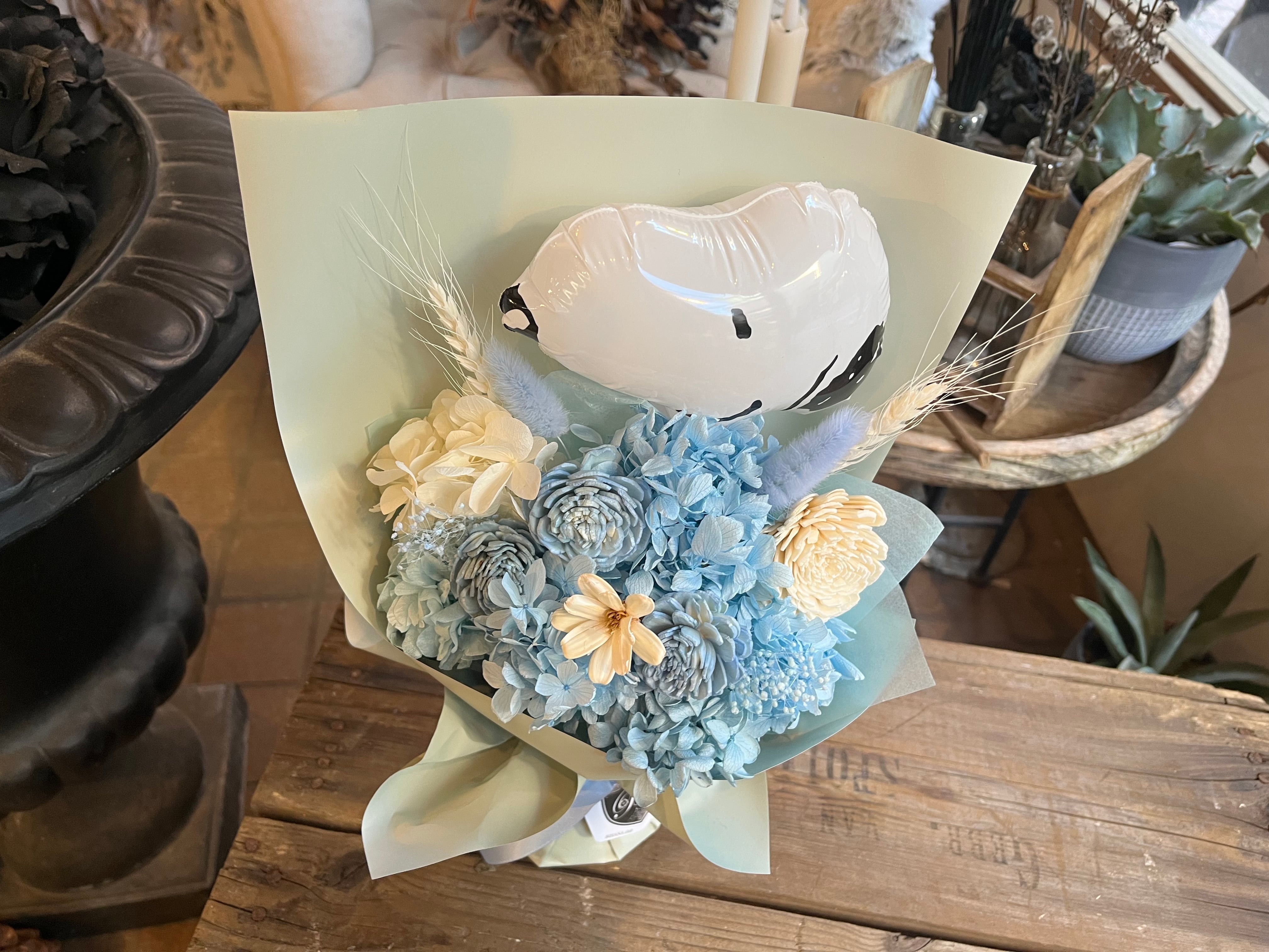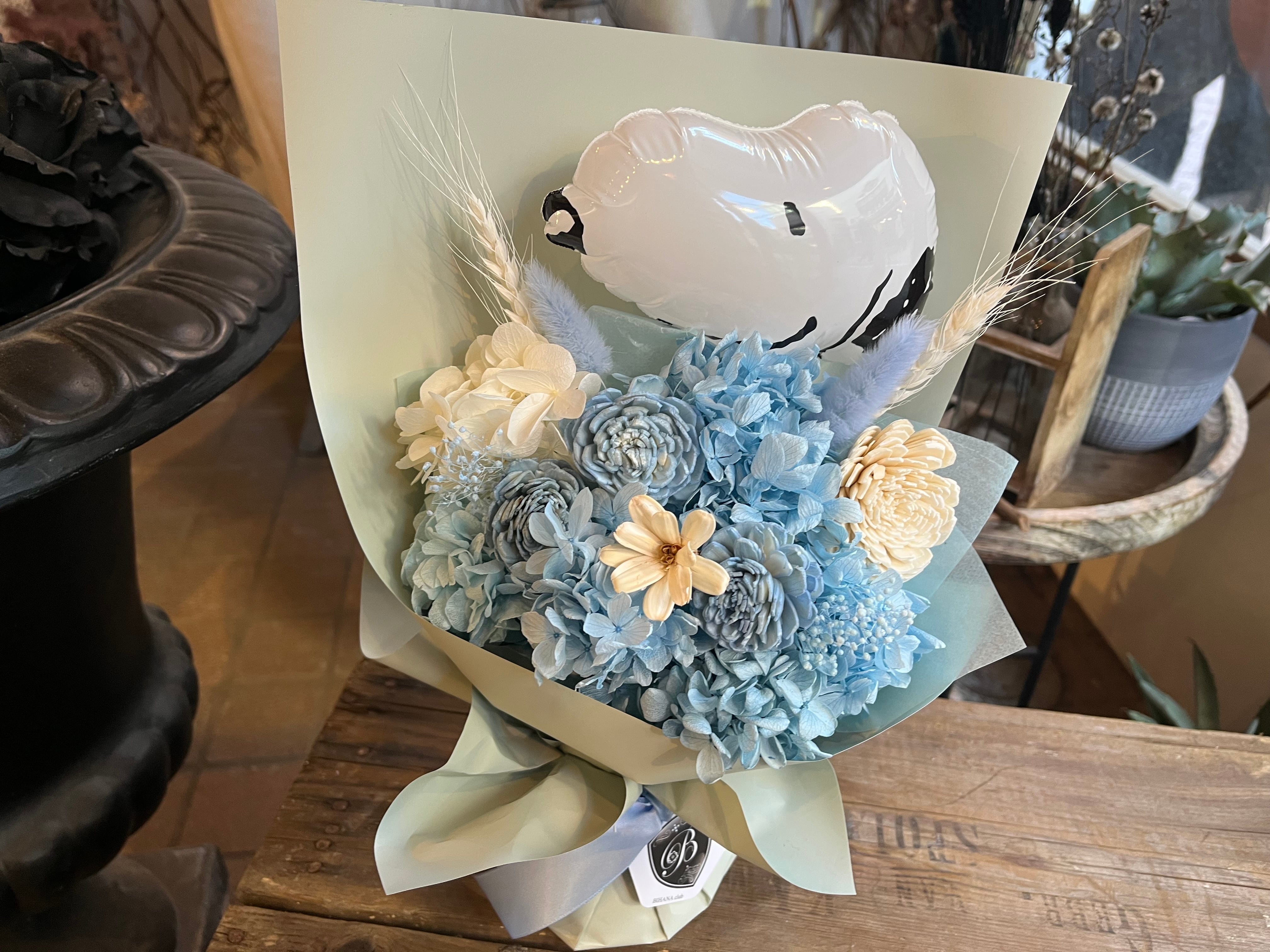 【美花倶楽部のスヌーピーバルーン付き スタンディングブーケ】