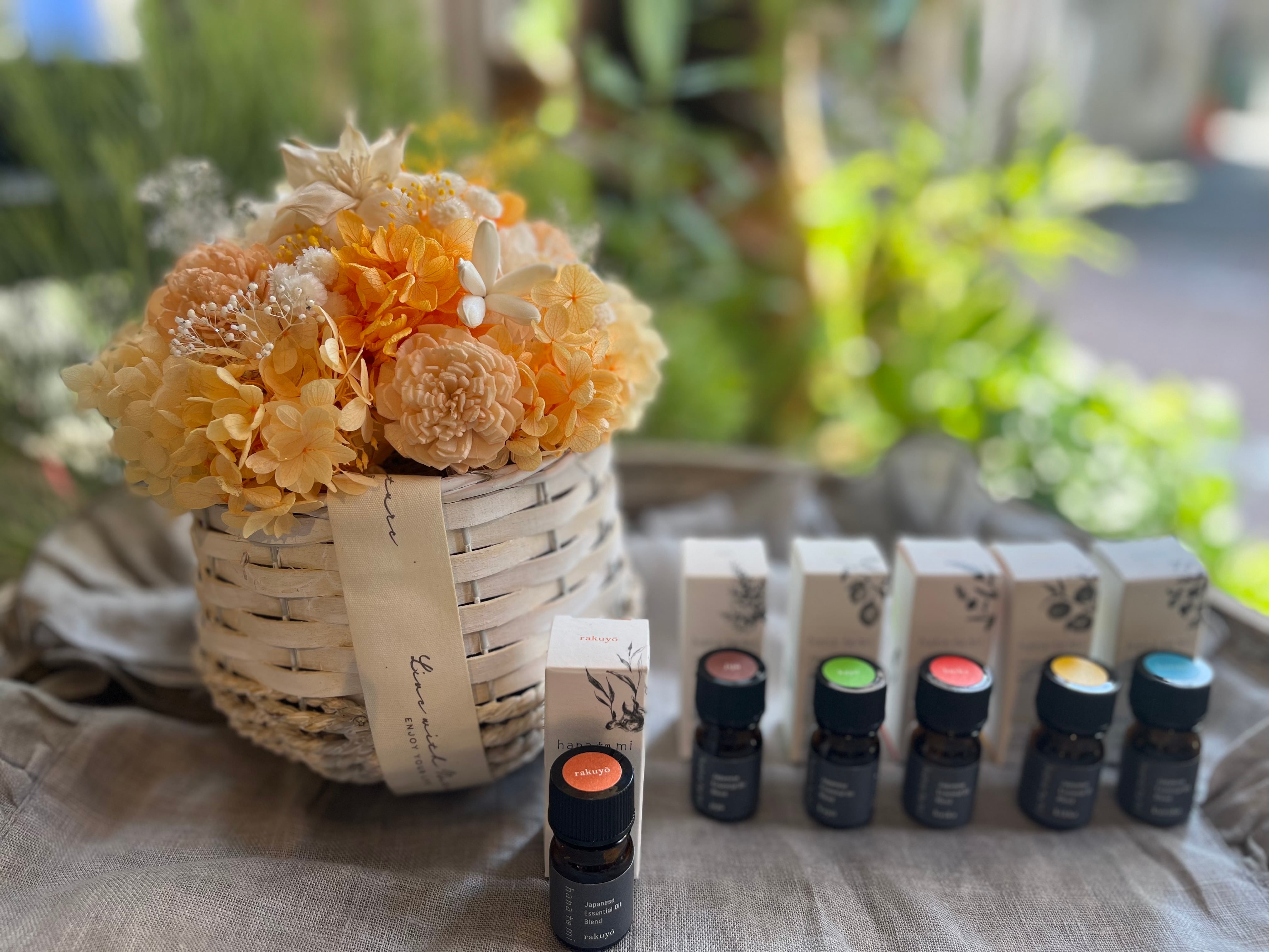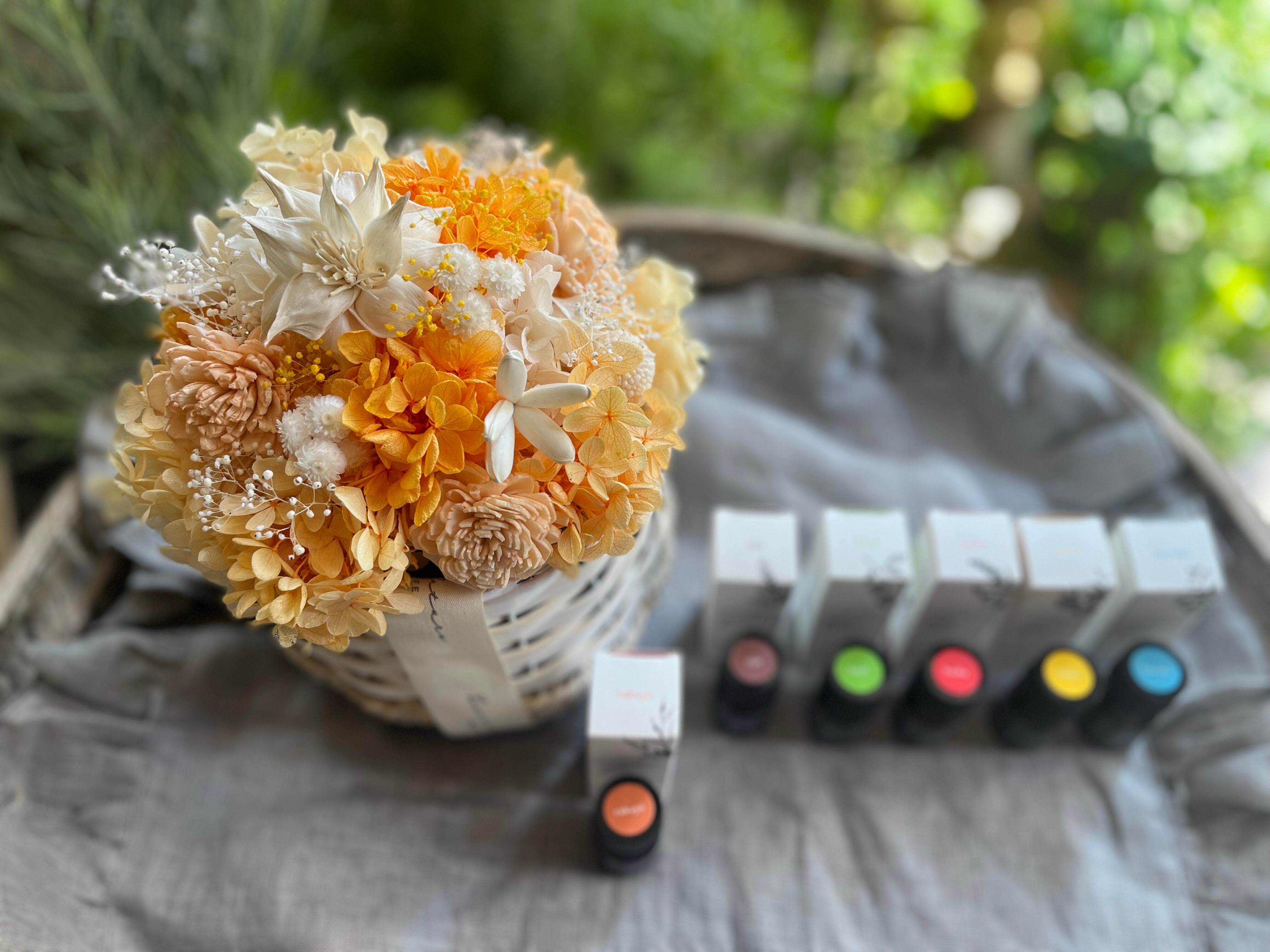ご注文時に、約7日間持続する5種類のエッセンシャルオイルから、贈る相手に合わせた特別な香りをプラスできます。