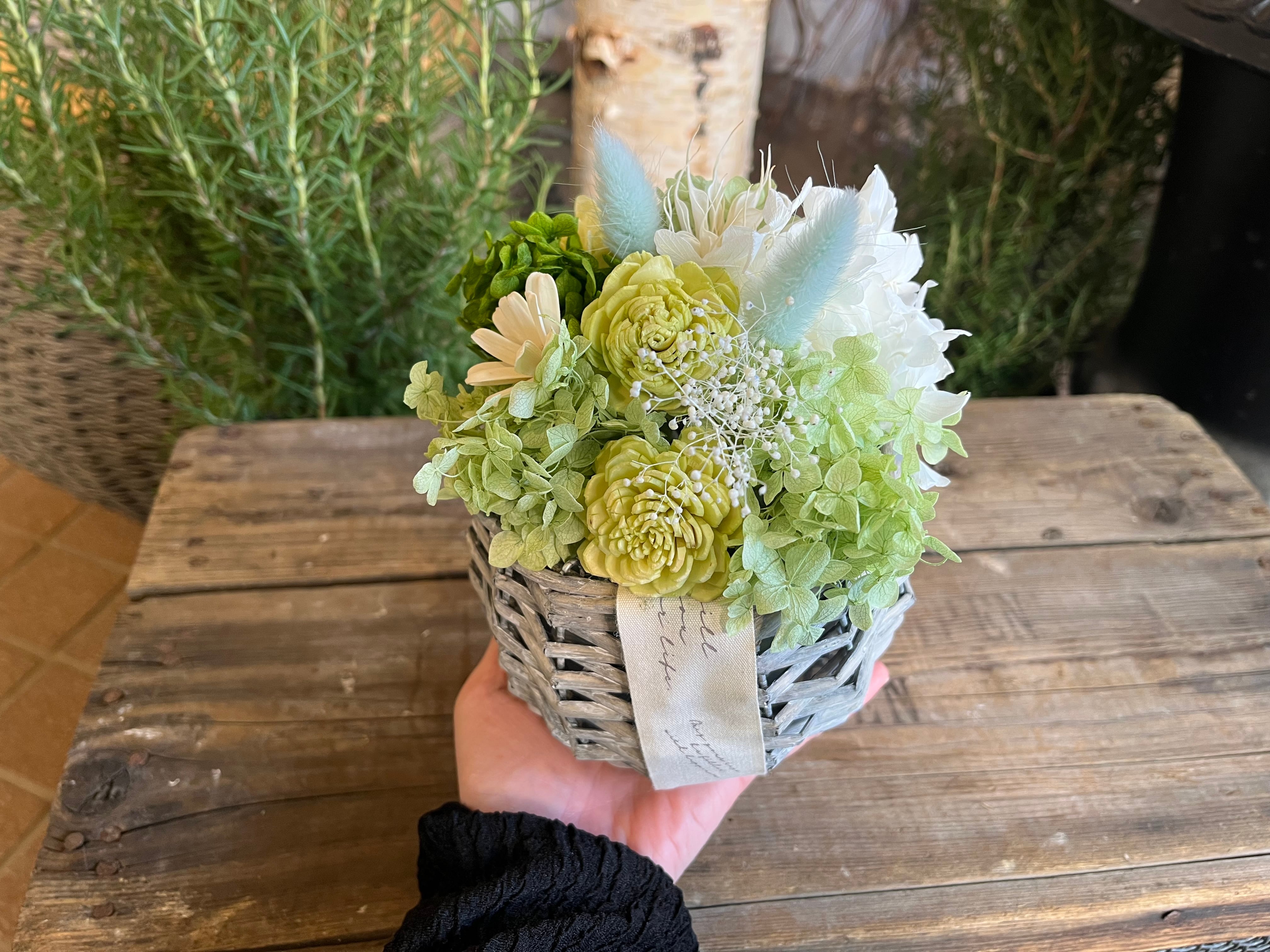 花瓶不要でそのまま飾れる プリザーブドフラワーアレンジメント|フレッシュグリーン(S)|誕生日 退職 送別ギフト