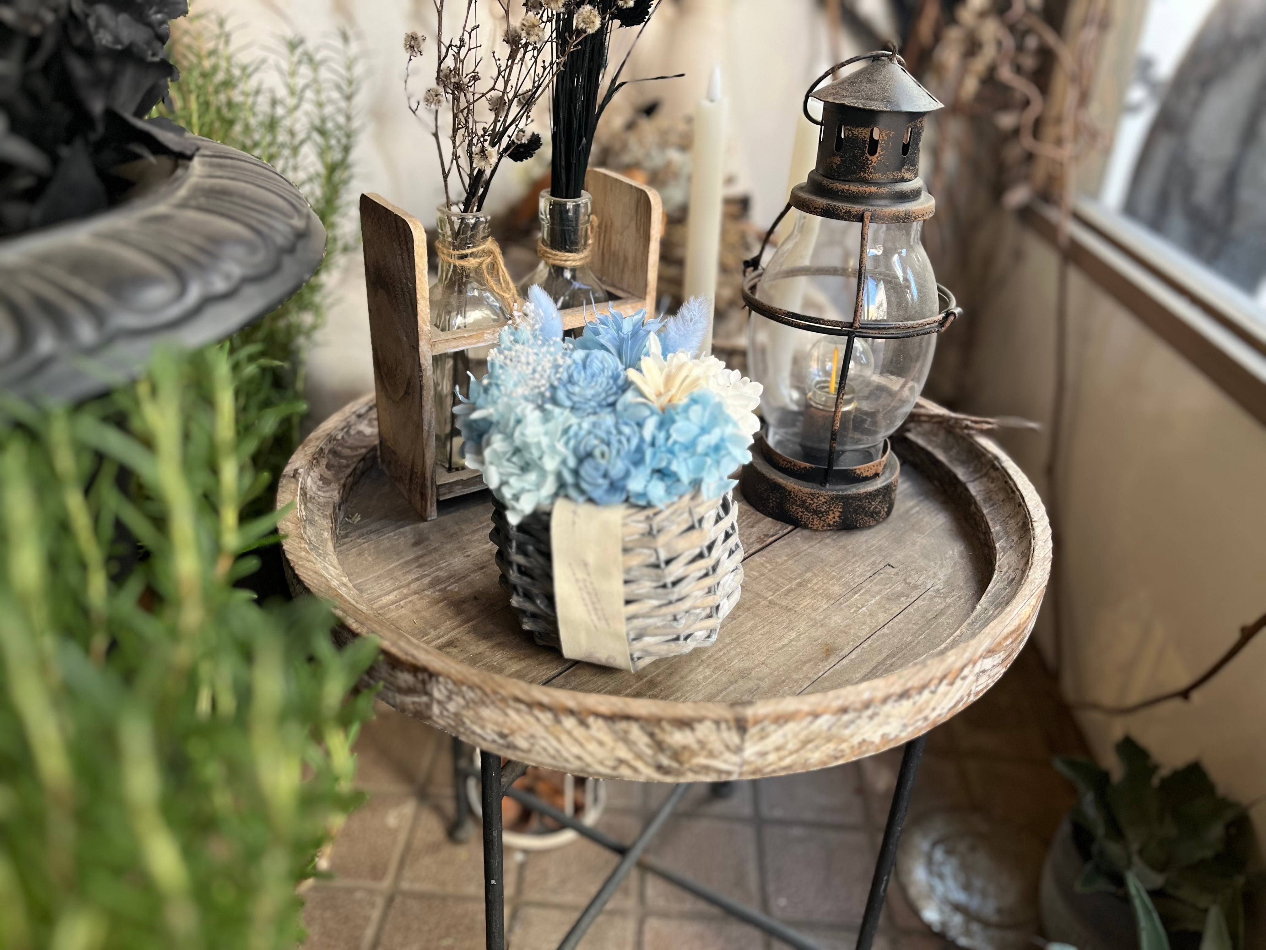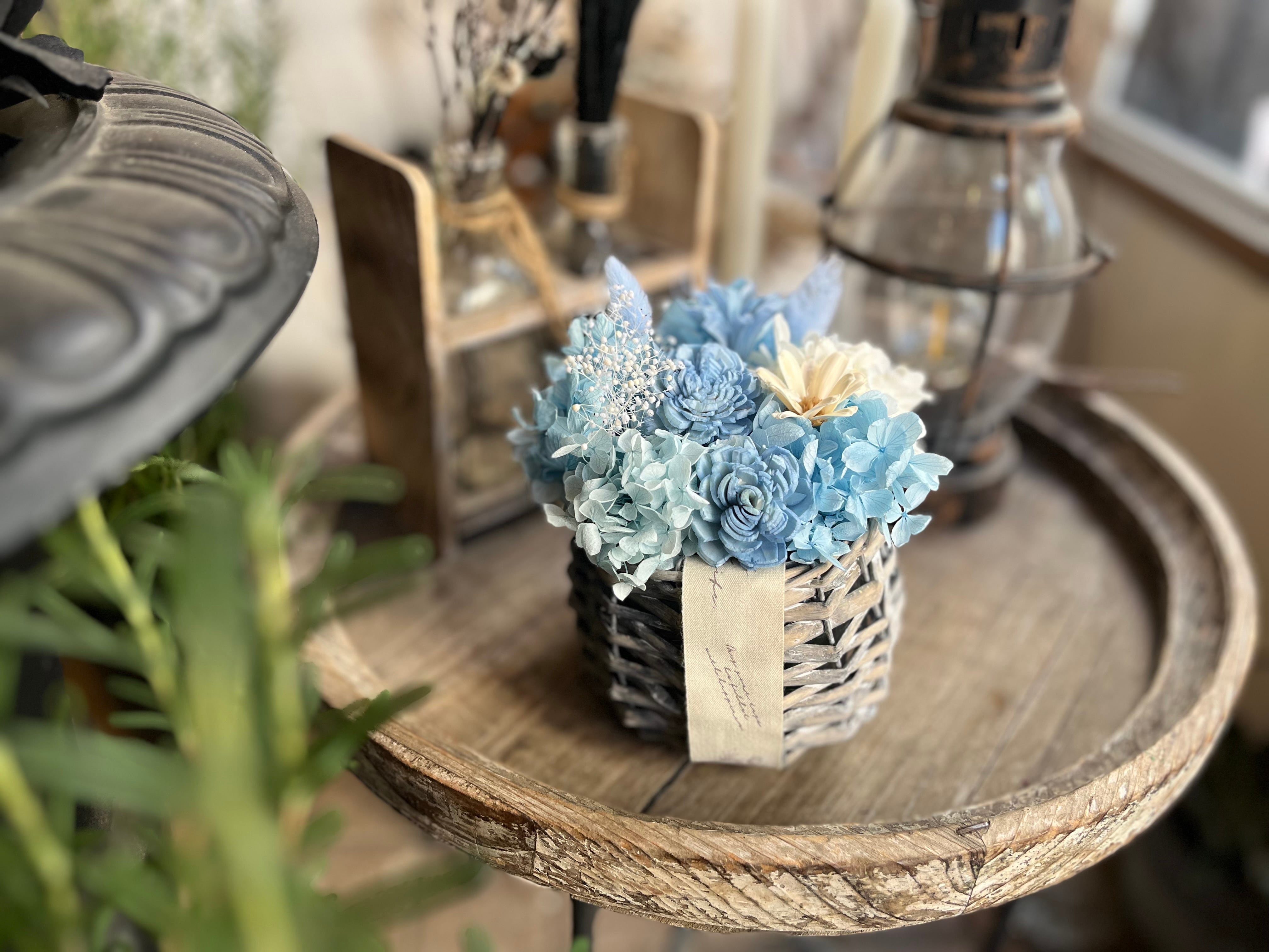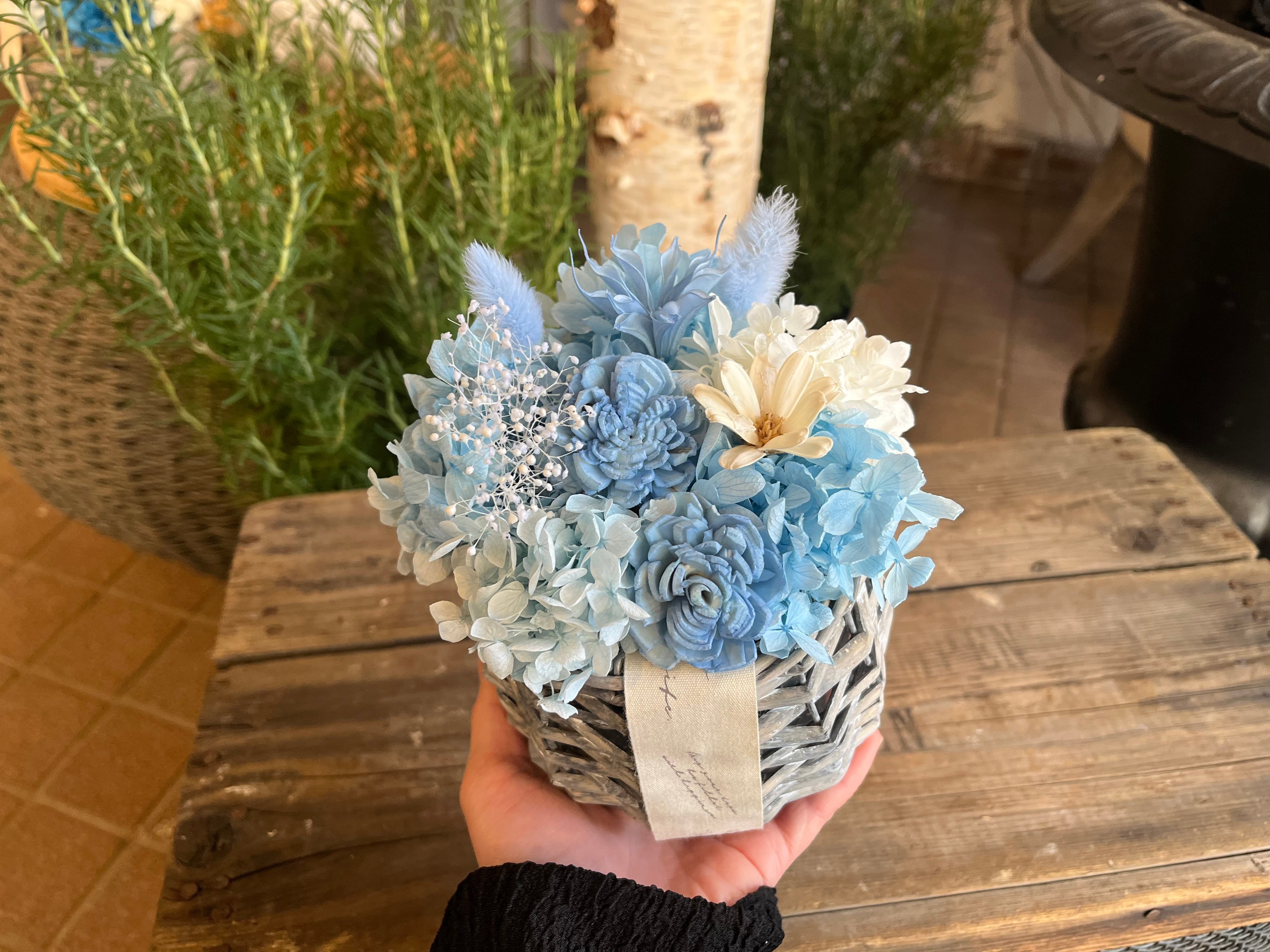 花瓶不要でそのまま飾れる プリザーブドフラワーアレンジメント|シフォンブルー(S)|誕生日 退職 送別ギフト