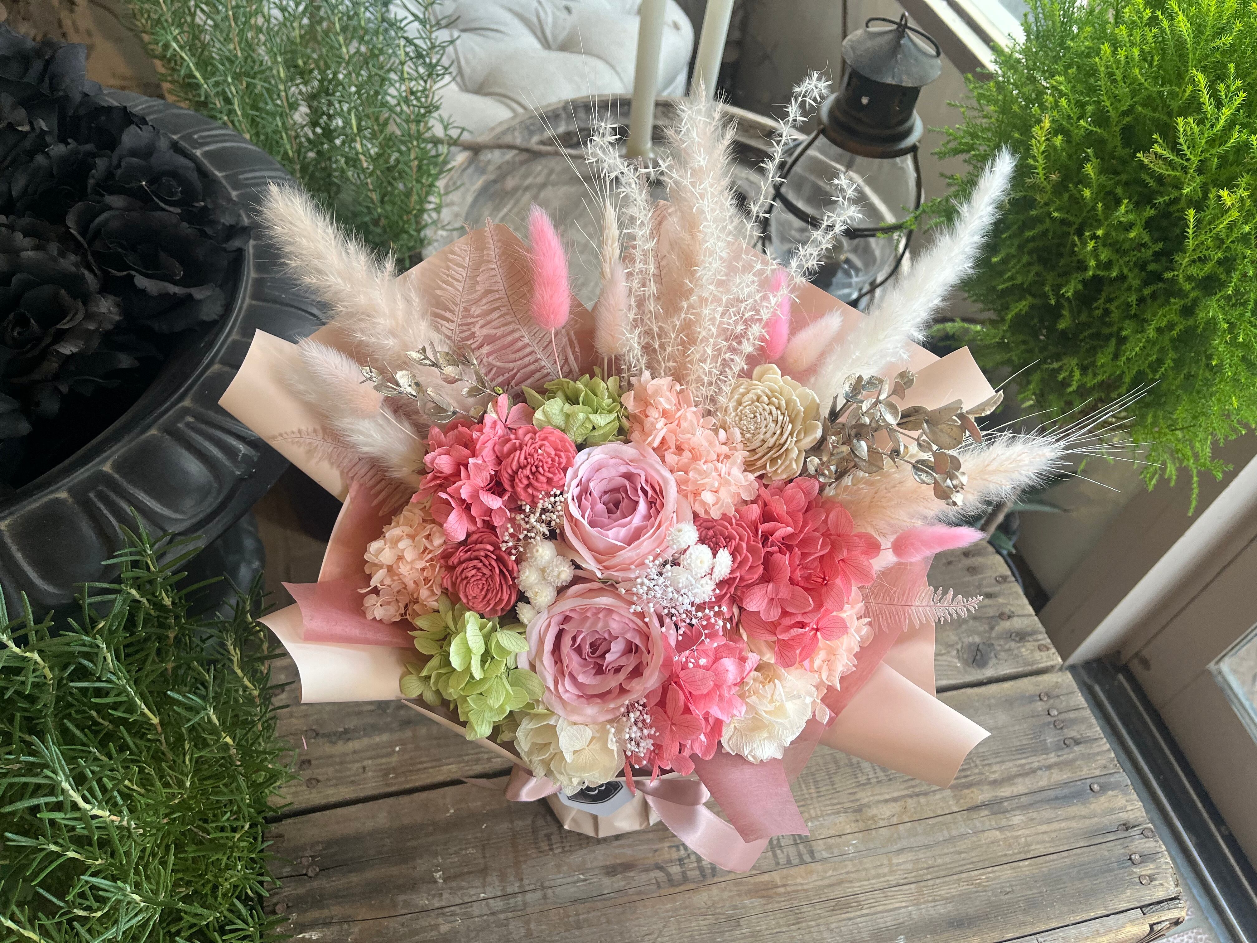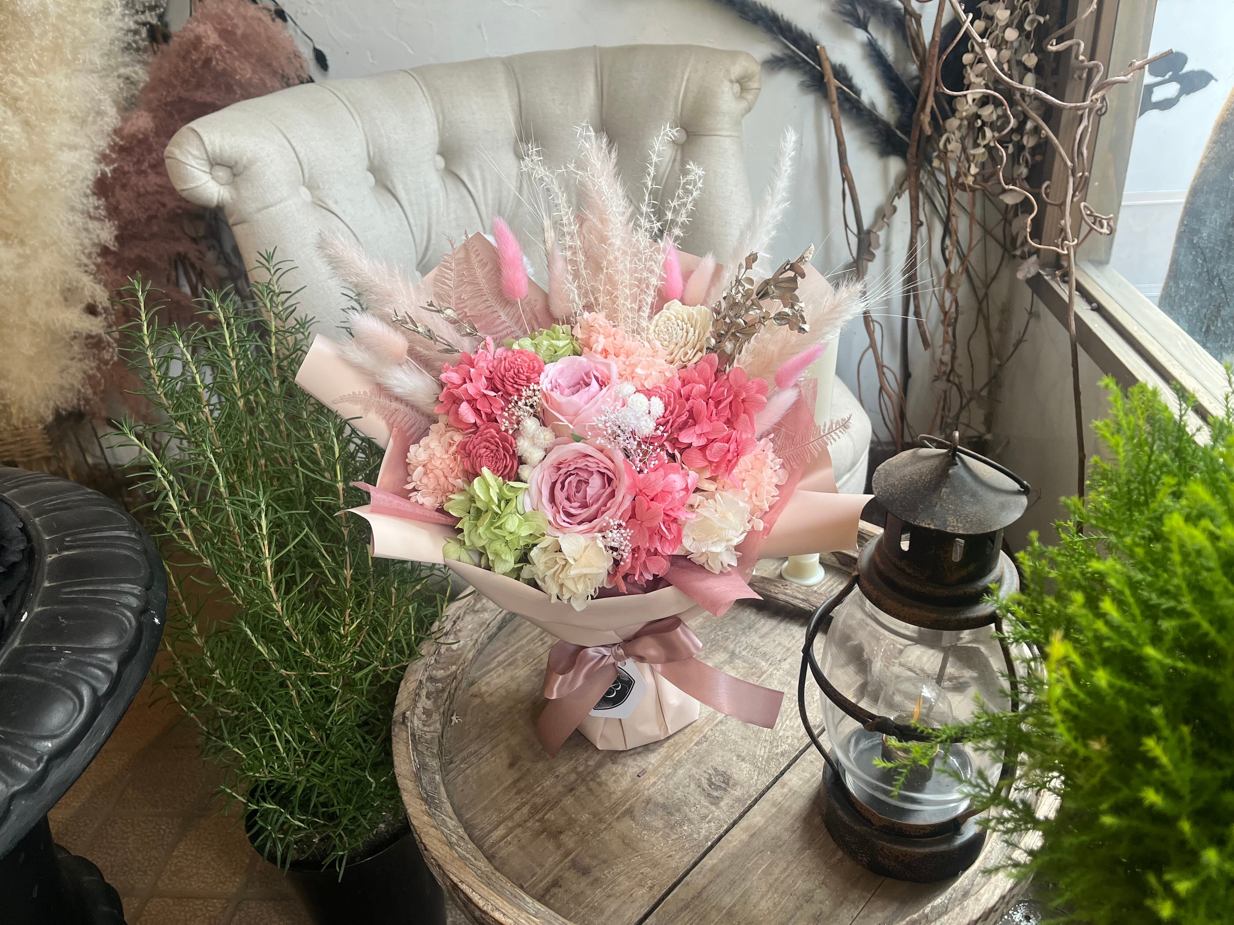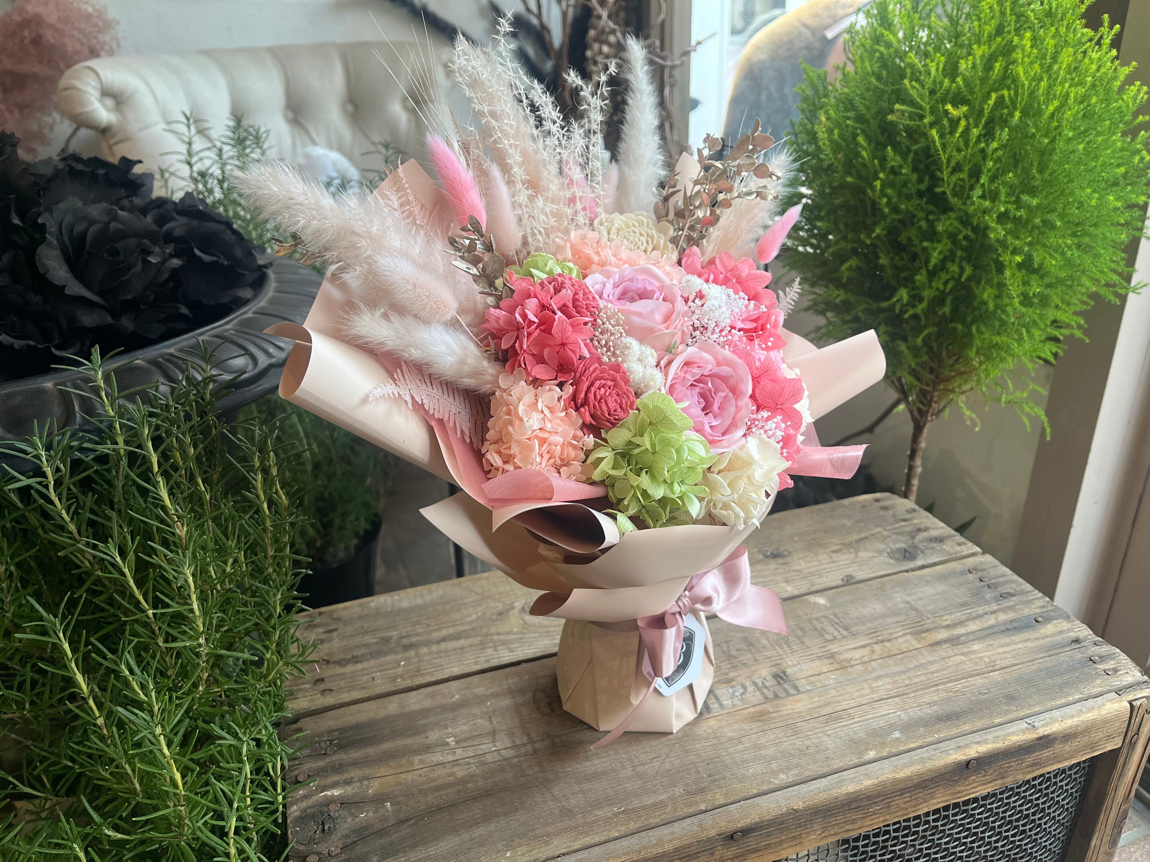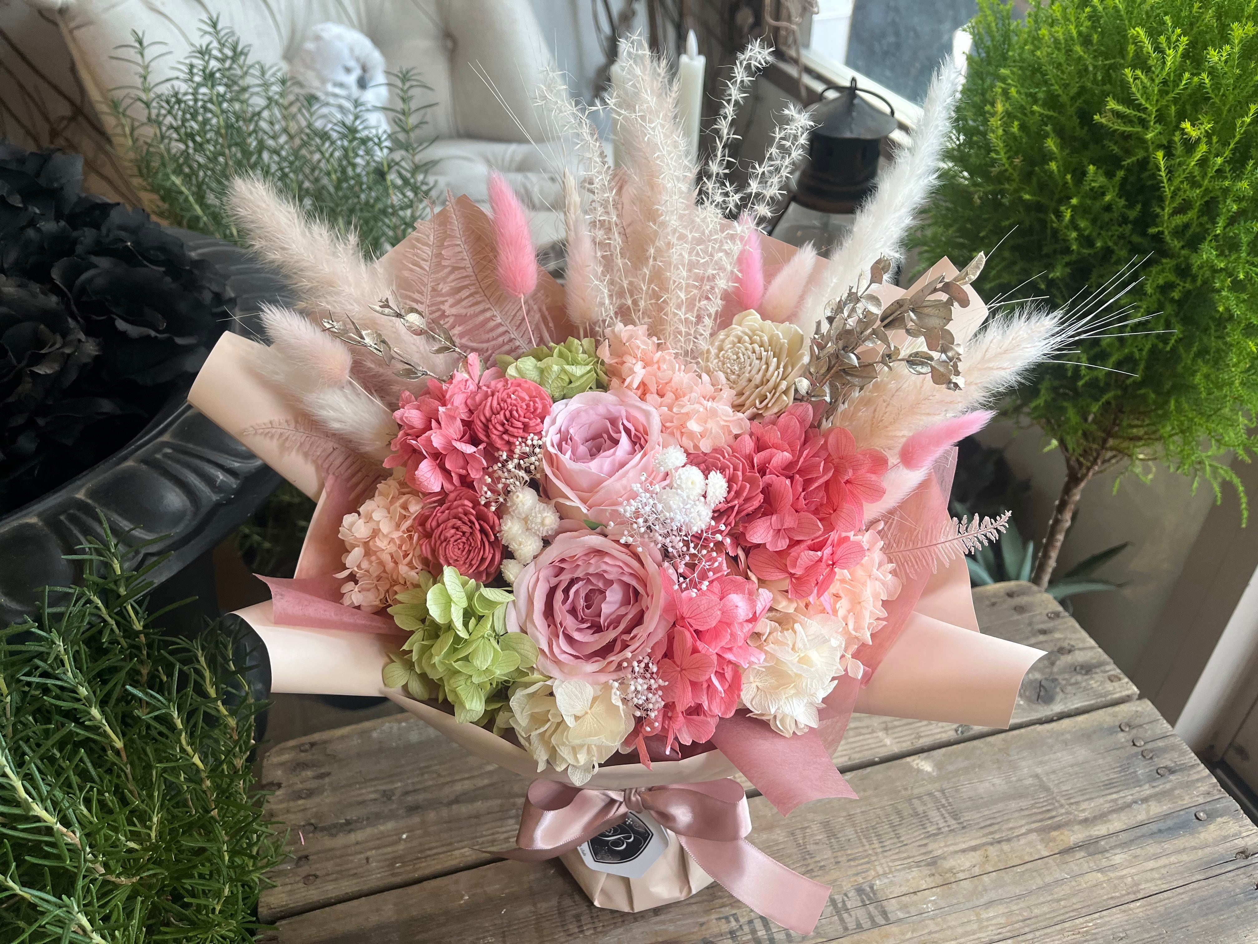 プリザーブドフラワー スタンディングブーケ(自立型)フレッシュピンクガーデン|退職・送別・誕生日・法人ギフトに