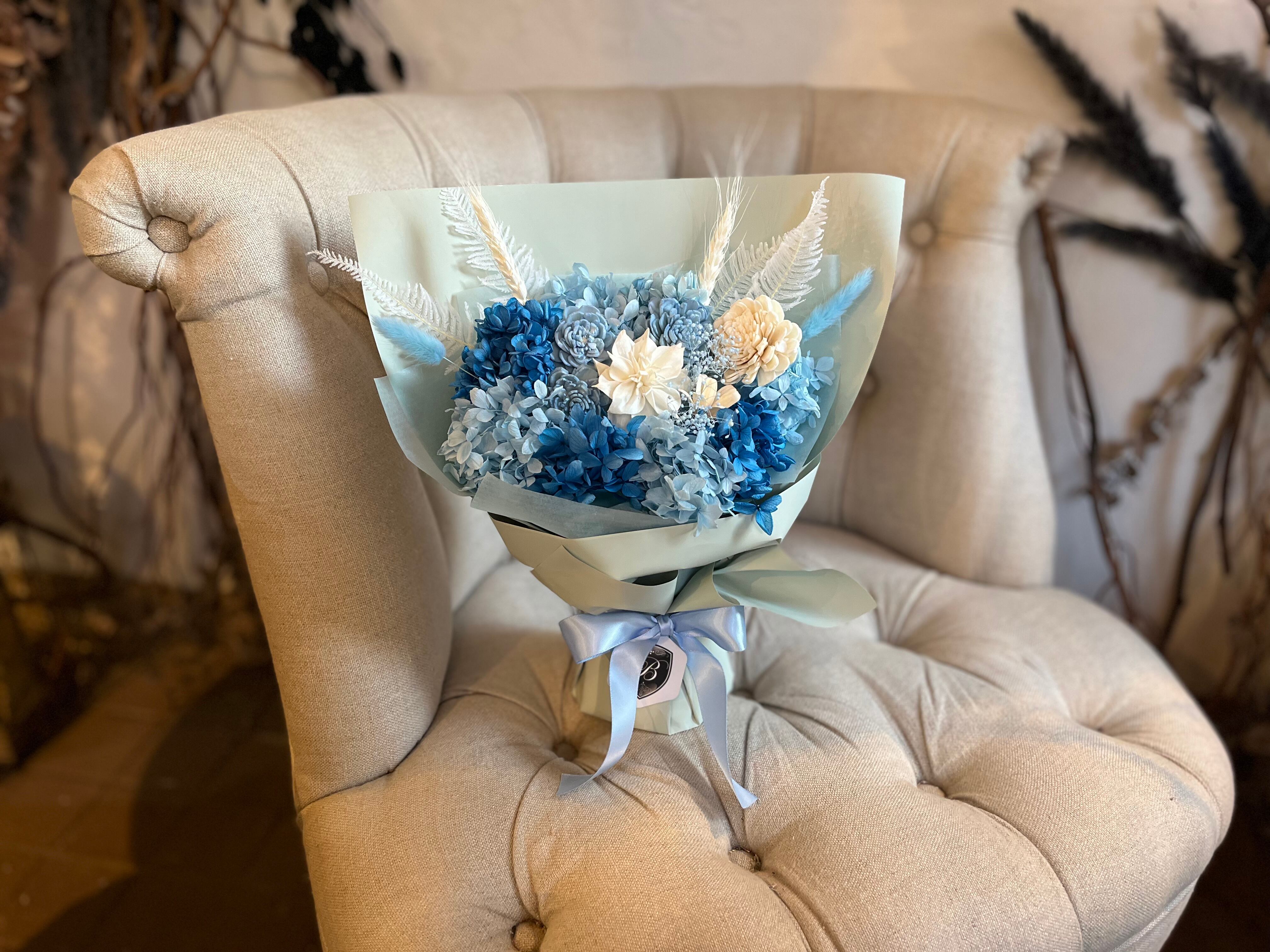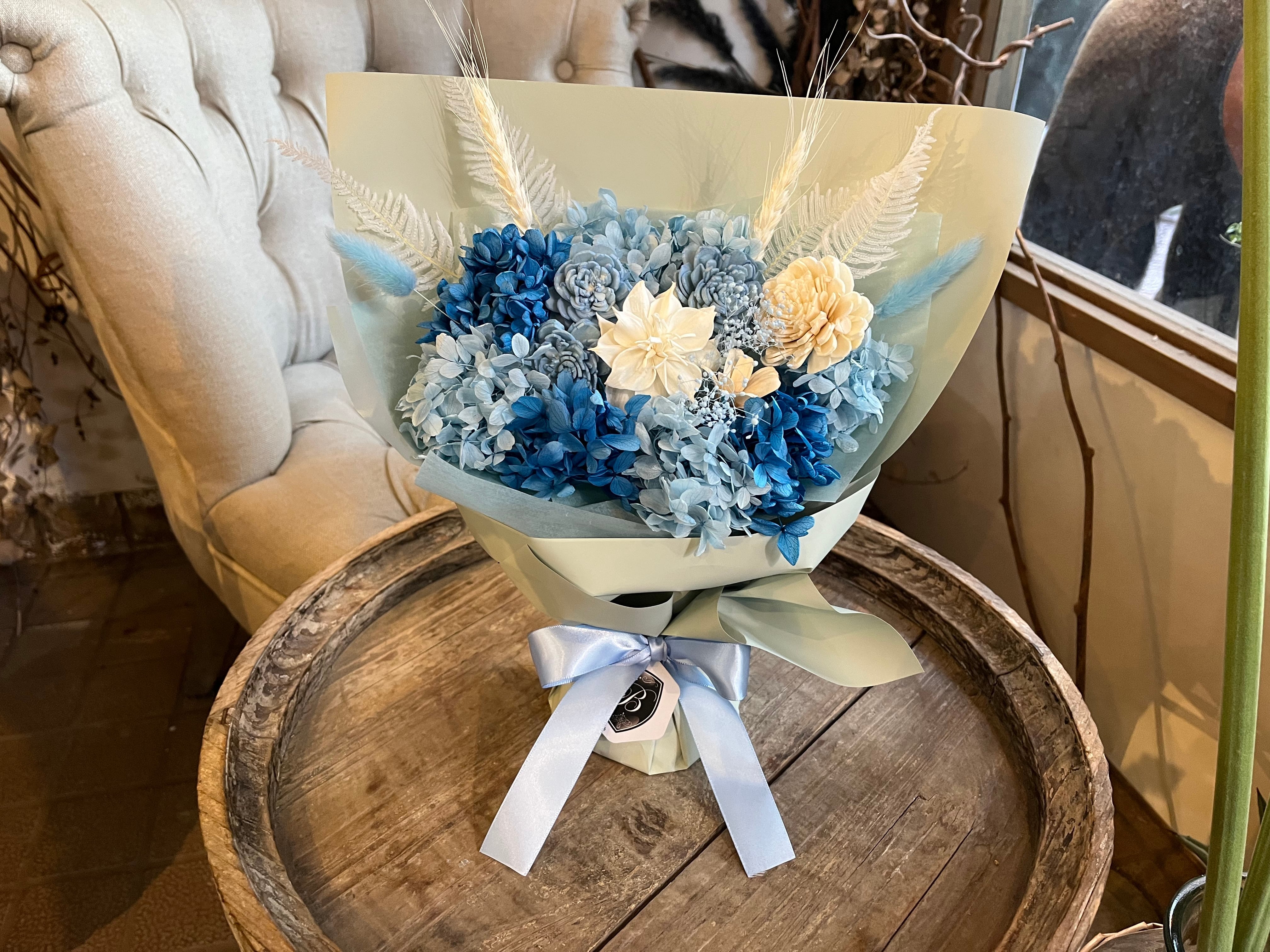 涼やかなブルーの花束です。