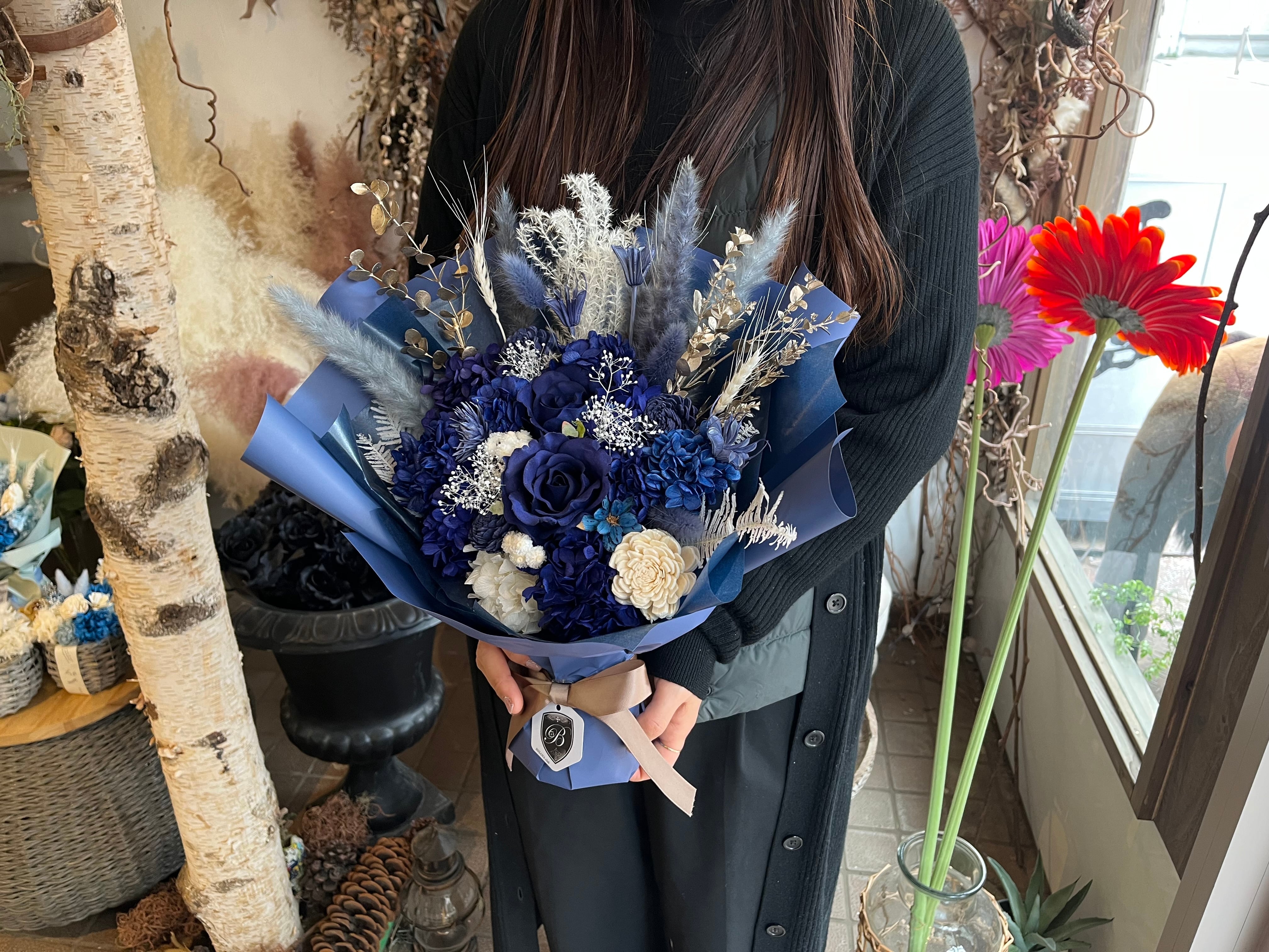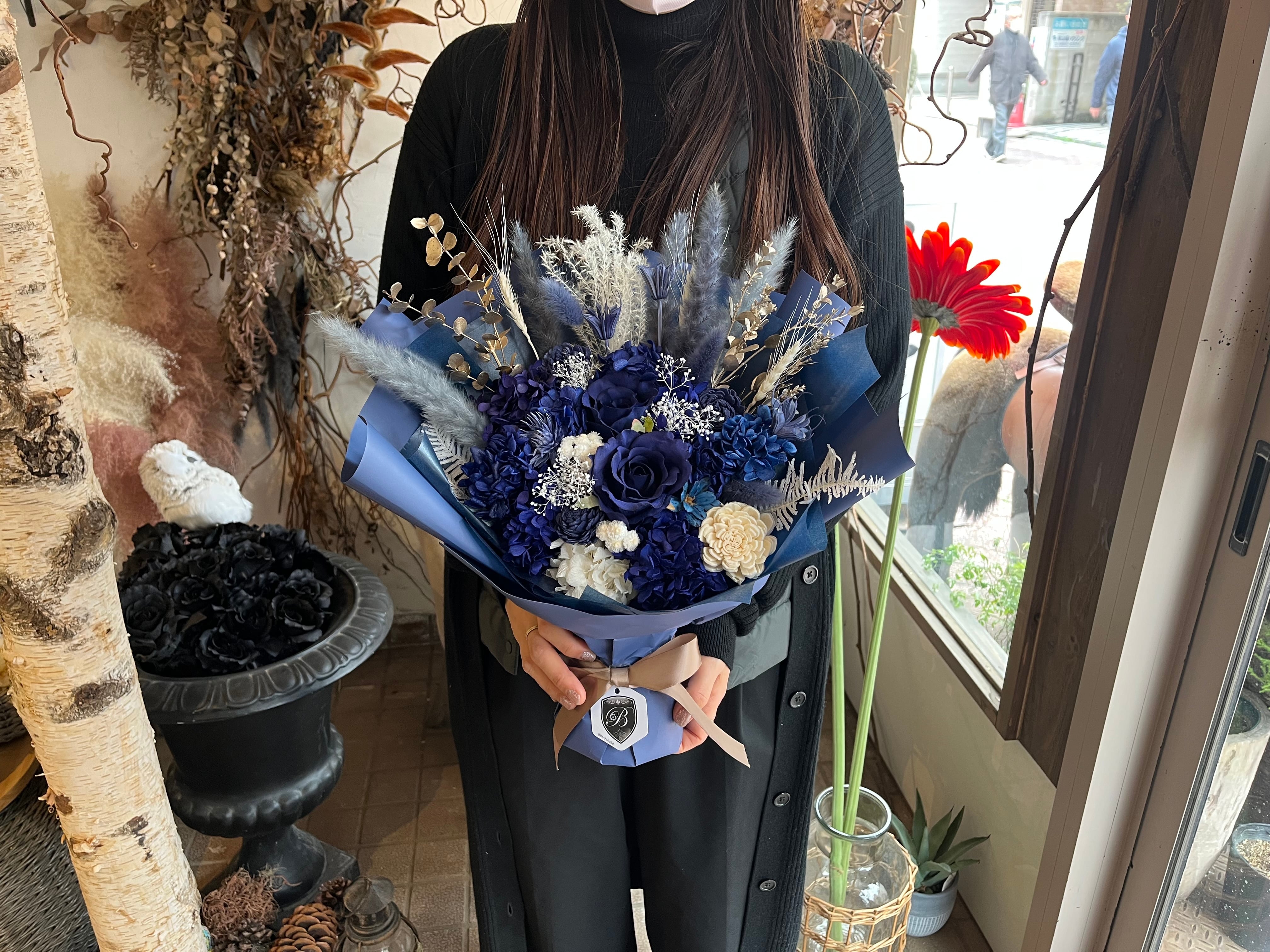 プリザーブドフラワー 花束 ギフト|スタンディングブーケ(自立型・花瓶不要)ディープブルー