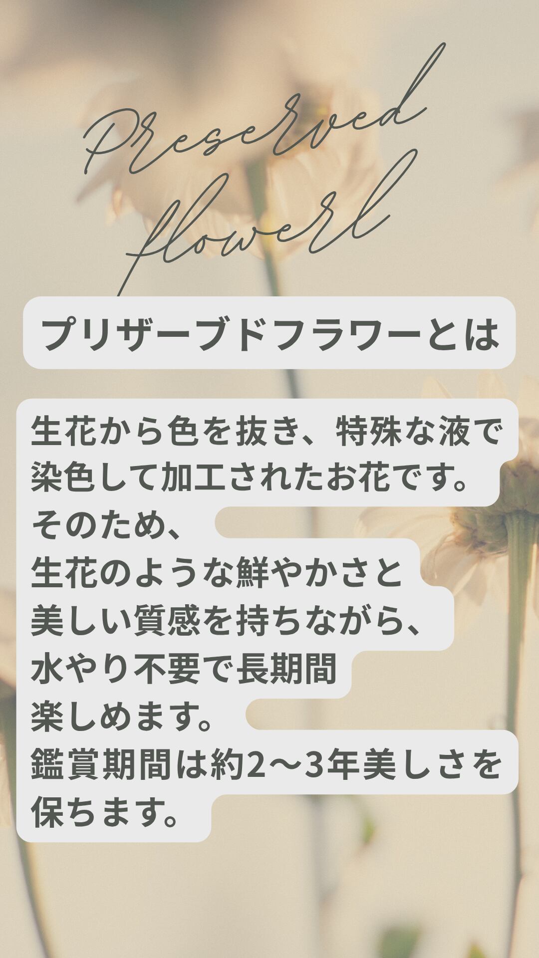 同梱物:プリザーブドフラワー取扱説明書・主な花材説明書