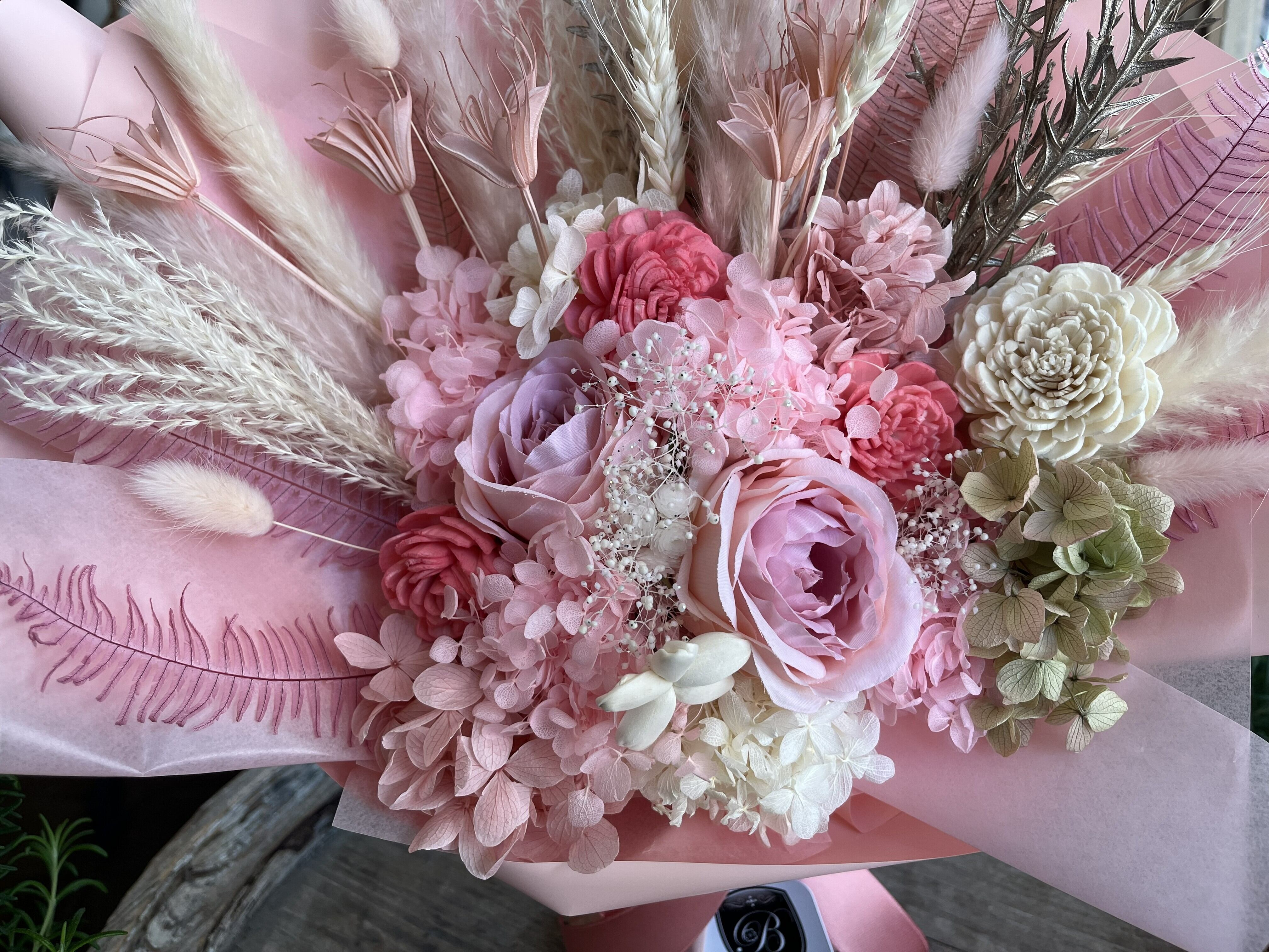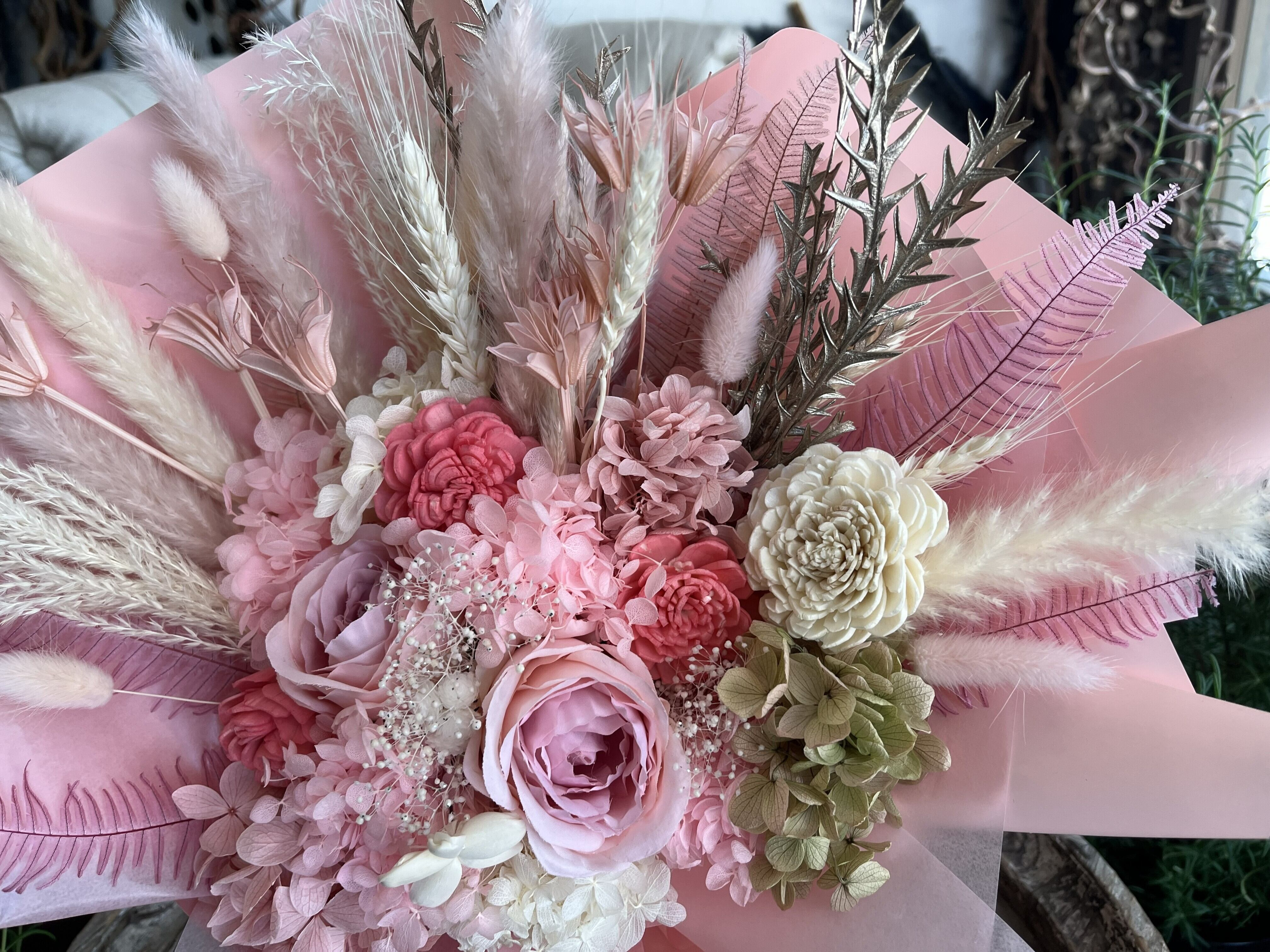 大切な想いを、長く美しく残せる花束です。
